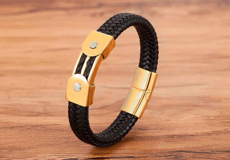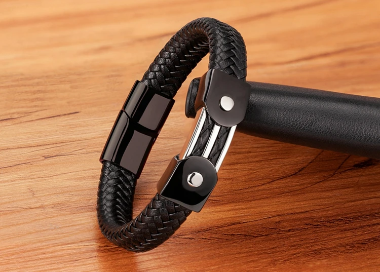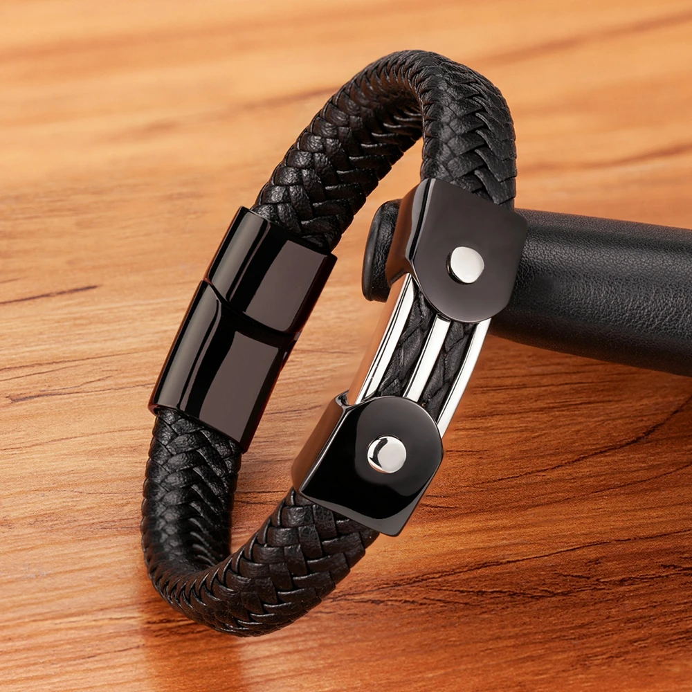 Кожаный мужской браслет классического дизайна с инкрустированными аксессуарами из нержавеющей стали, рождественский подарок