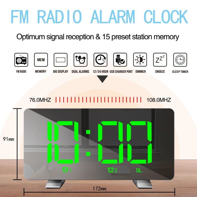 Горячая Распродажа светодиодный цифровые часы-будильник 6 дюймов Творческий Повтор электронные часы зарядка через USB FM радио Будильник Поддержка двойные сигналы