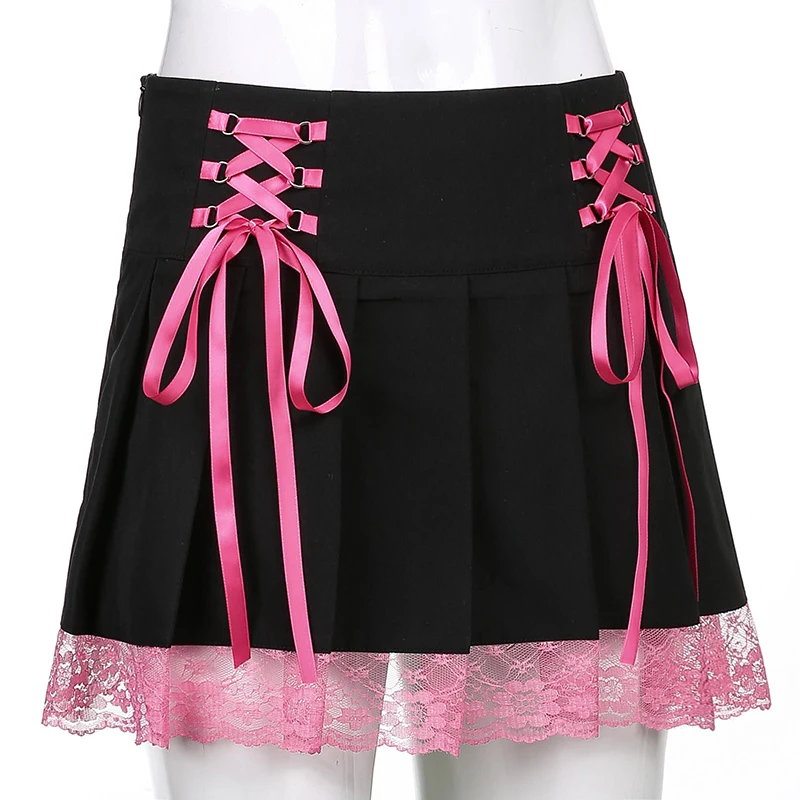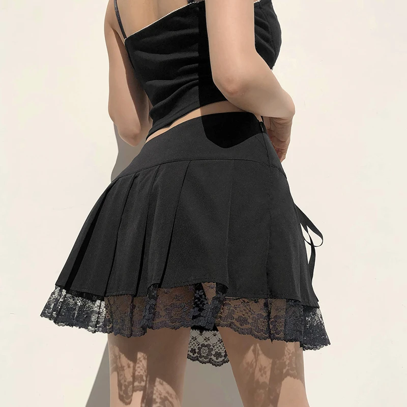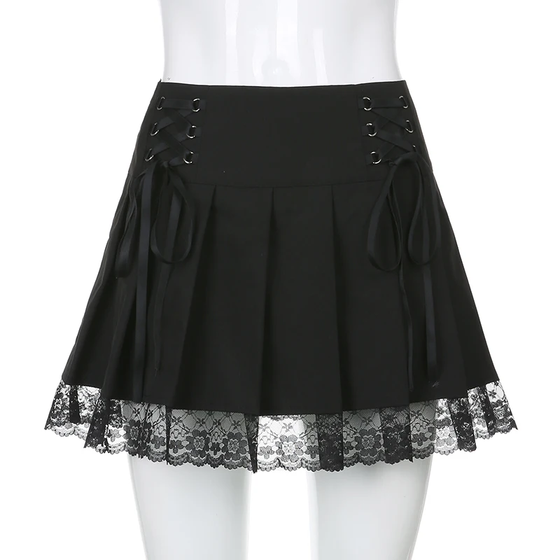 Юбка-трапеция Женская кружевная на шнуровке, в готическом стиле