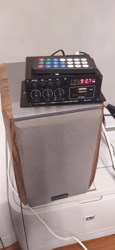 доставка 3 недели в Красноярск. Брал для домашнего кинотеатра (проектора). Динамики ещё не пришли. Попробовал на стареньком Microlab. Усилок мал да удал. Для его габаритов вполне себе серьезный малыш. )) Качество звука для меня отличное, я не аудиофил к счастью. Есть радио, входы - aux, Bluetooth, USB, SD, пульт ДУ, все функции отлично работают. При максимальной громкости греется средне. Заказом доволен. Продавцу 5+.