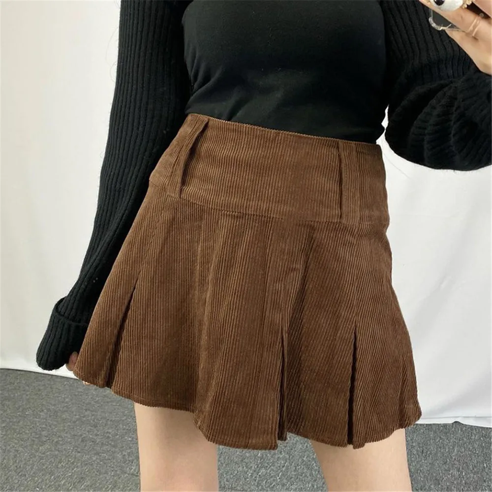 Женская модная повседневная однотонная сексуальная стильная модная Вельветовая плиссированная мини-юбка с высокой талией для покупок повседневная одежда черная коричневая