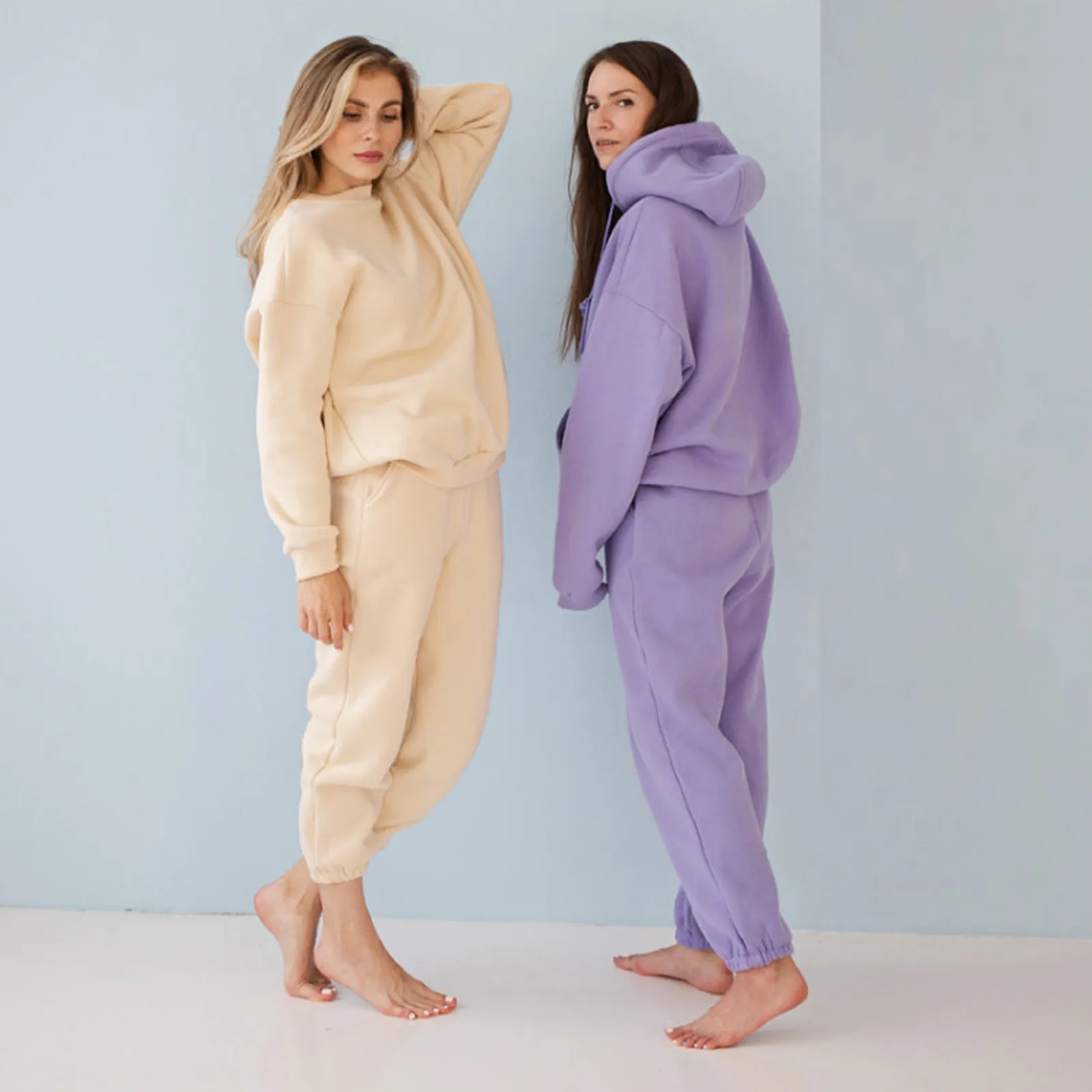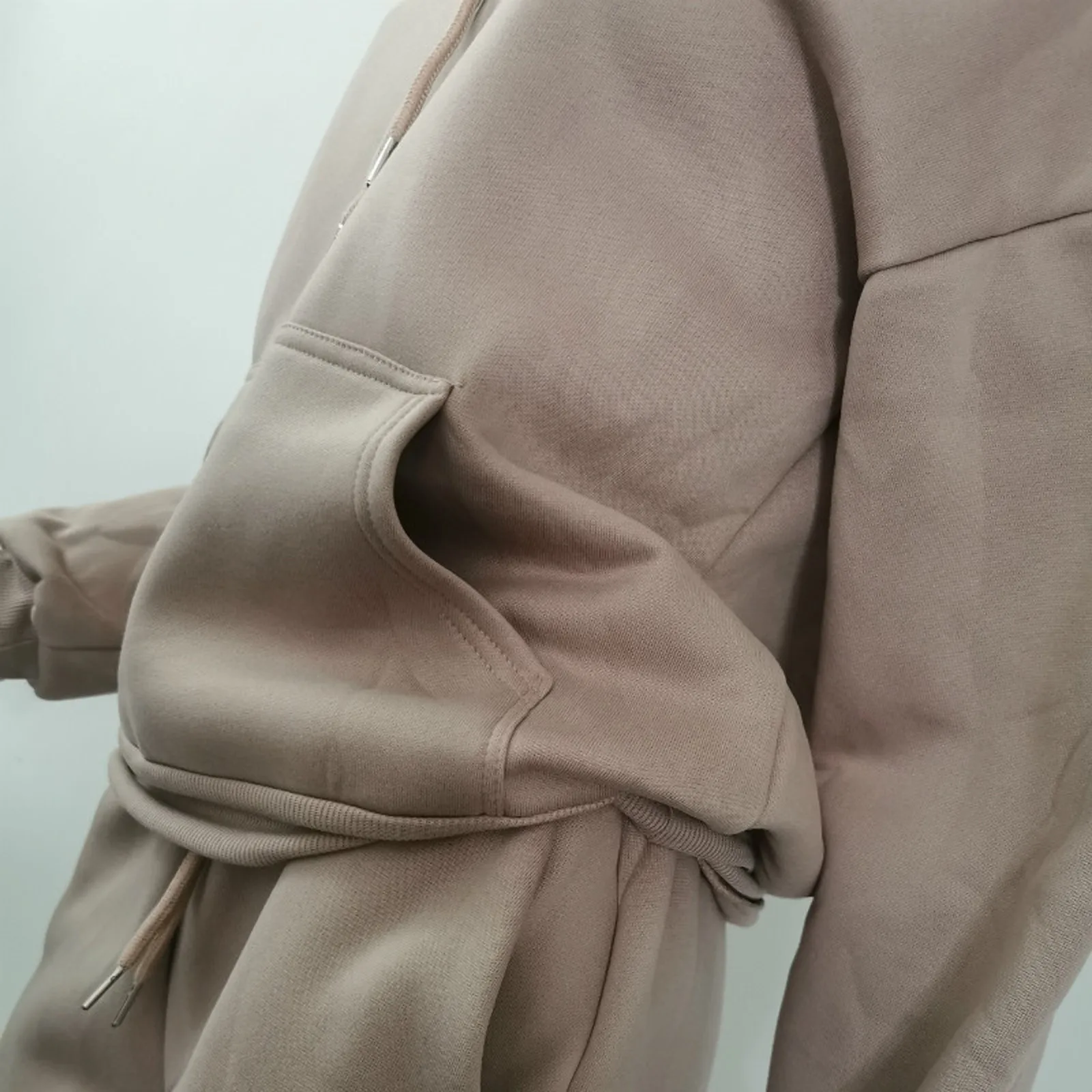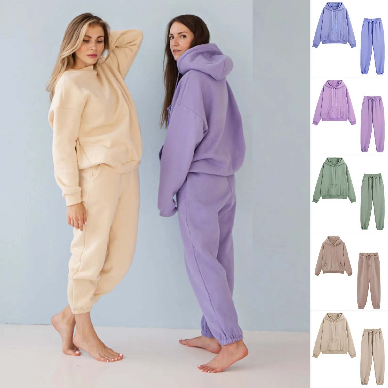 Женский спортивный костюм из двух предметов, теплый свитшот с капюшоном, спортивные костюмы для бега, комплект спортивной одежды для женщин, зима 2021