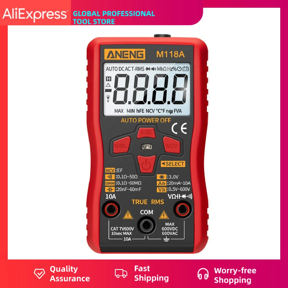 Цифровой мультиметр M118A с подсветкой, Бесконтактный стабильный ЖК-дисплей, инструмент для измерения, ABS, на батарейках, умный автоматический диапазон