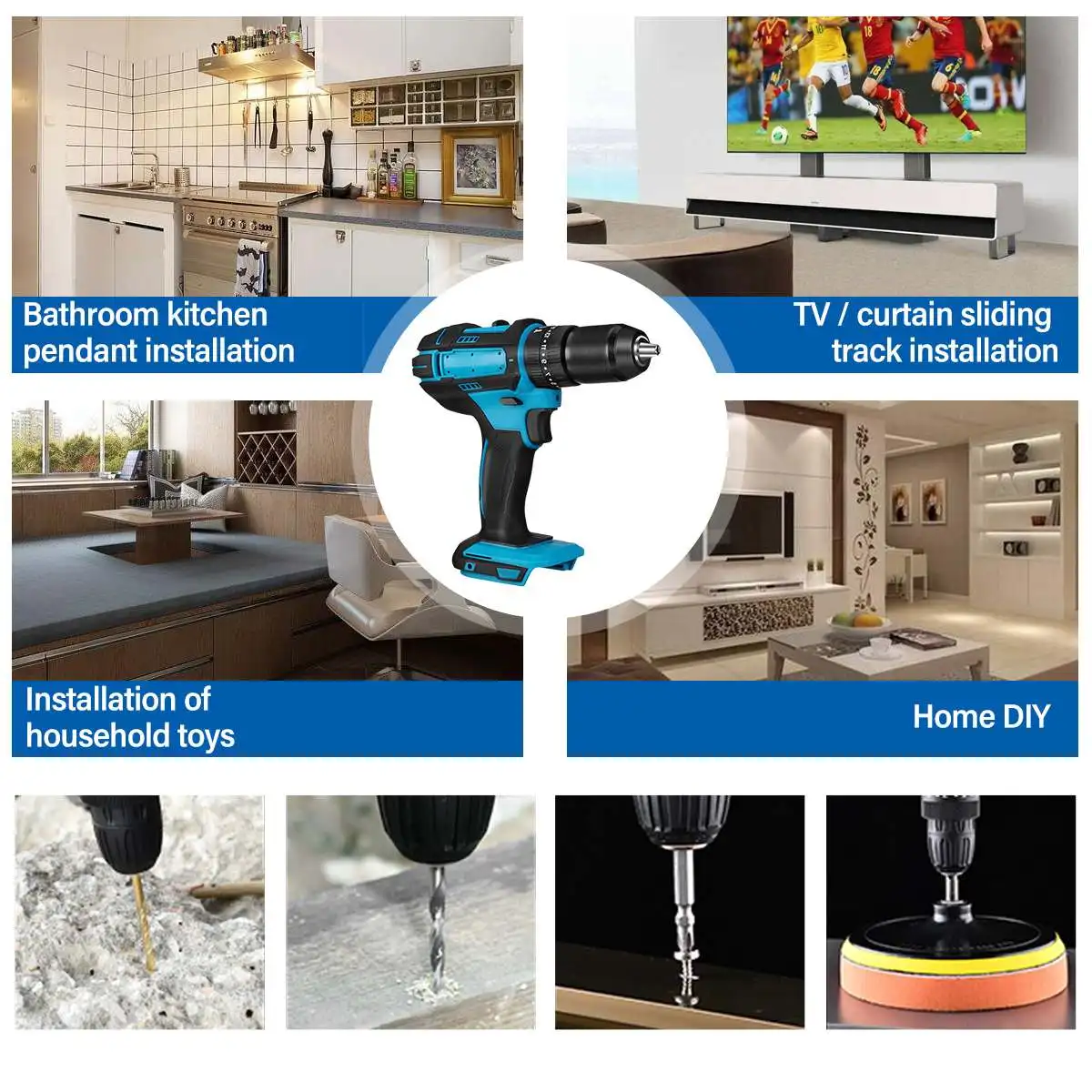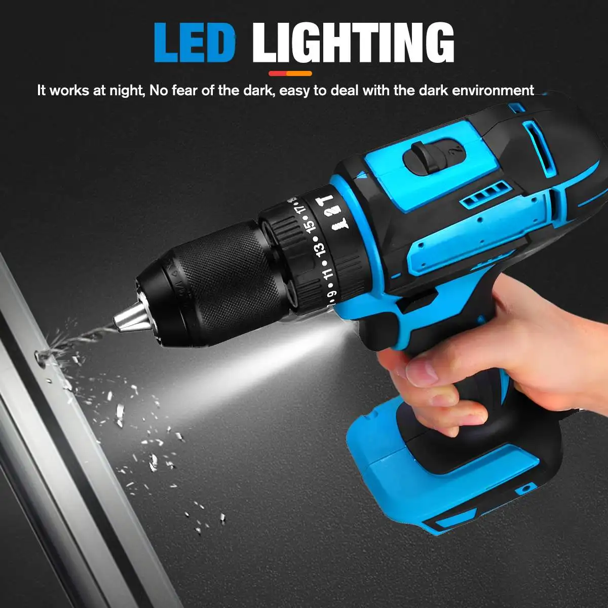 Щеточная электрическая дрель BLMIATKO 3 в 1, 10 мм, 350 нм, 20 + 3, перфоратор, шуруповерт, беспроводная ударная дрель для батареи Makita