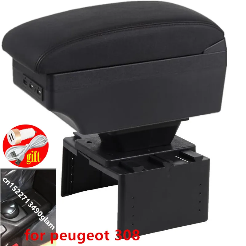 Подлокотник для peugeot 308 sw, для peugeot 308, центральный ящик для хранения, автомобильные аксессуары, интерьер с USB, светодиодный