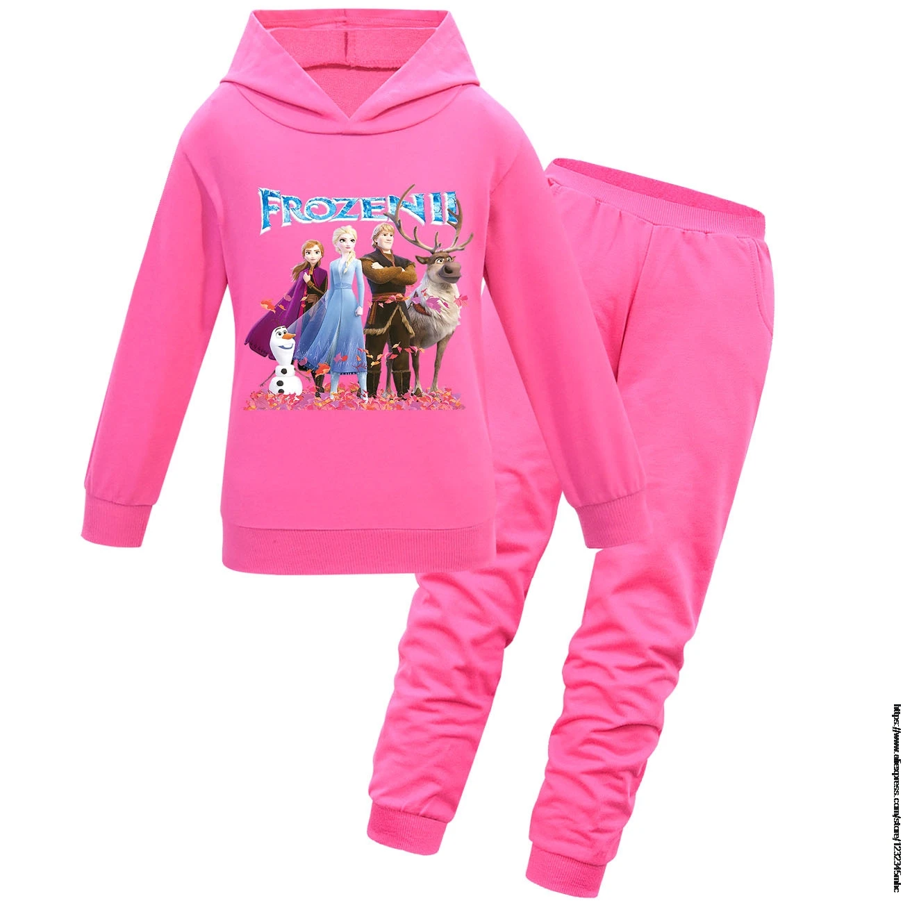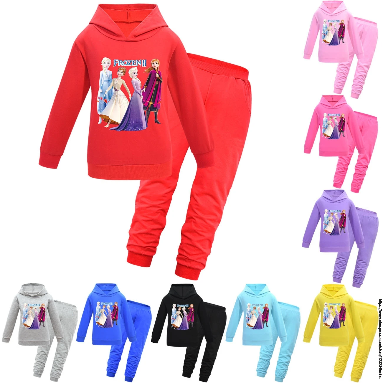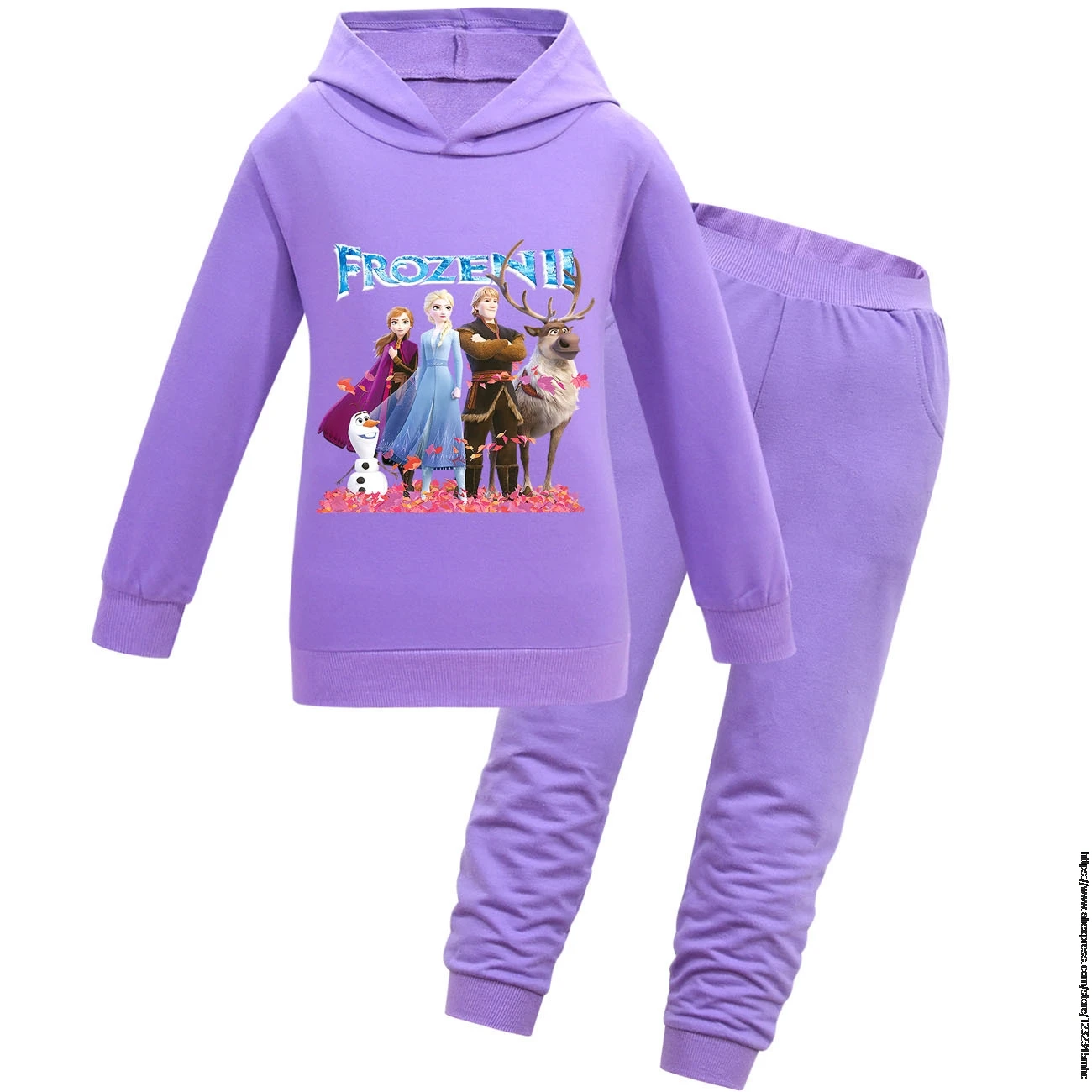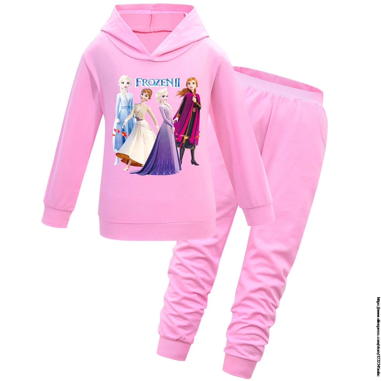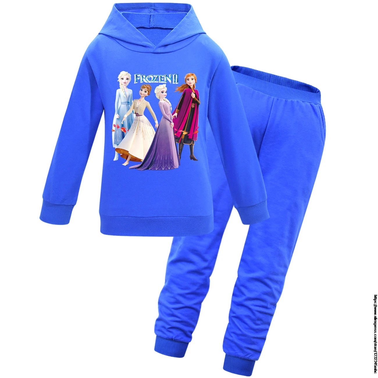 Эльзы из мультфильма "Холодное сердце", состоящие из кофты с капюшоном и штанов, костюм для девочек-подростков, одежда для мальчиков и девочек, детская одежда для сна, Disney, трикотажный свитер, костюм с кофтой; Осенне-зимняя детская одежда с рисунком, Спортивная кофта, худи