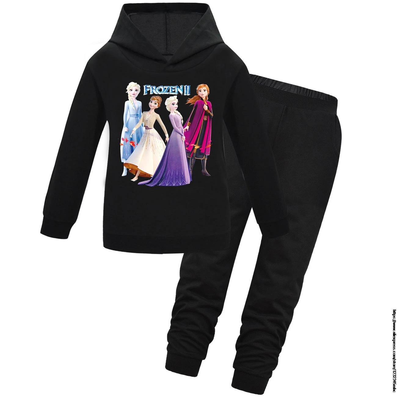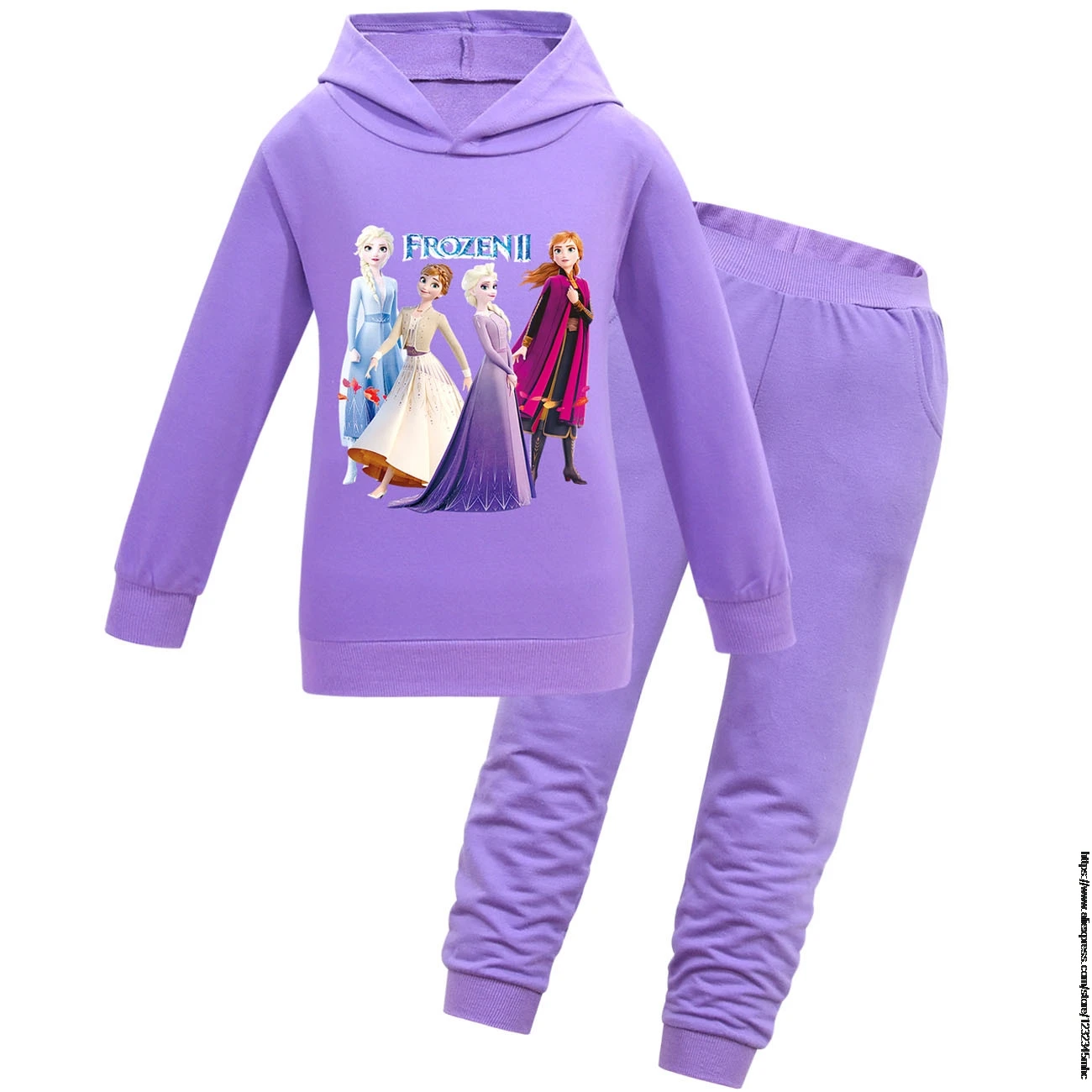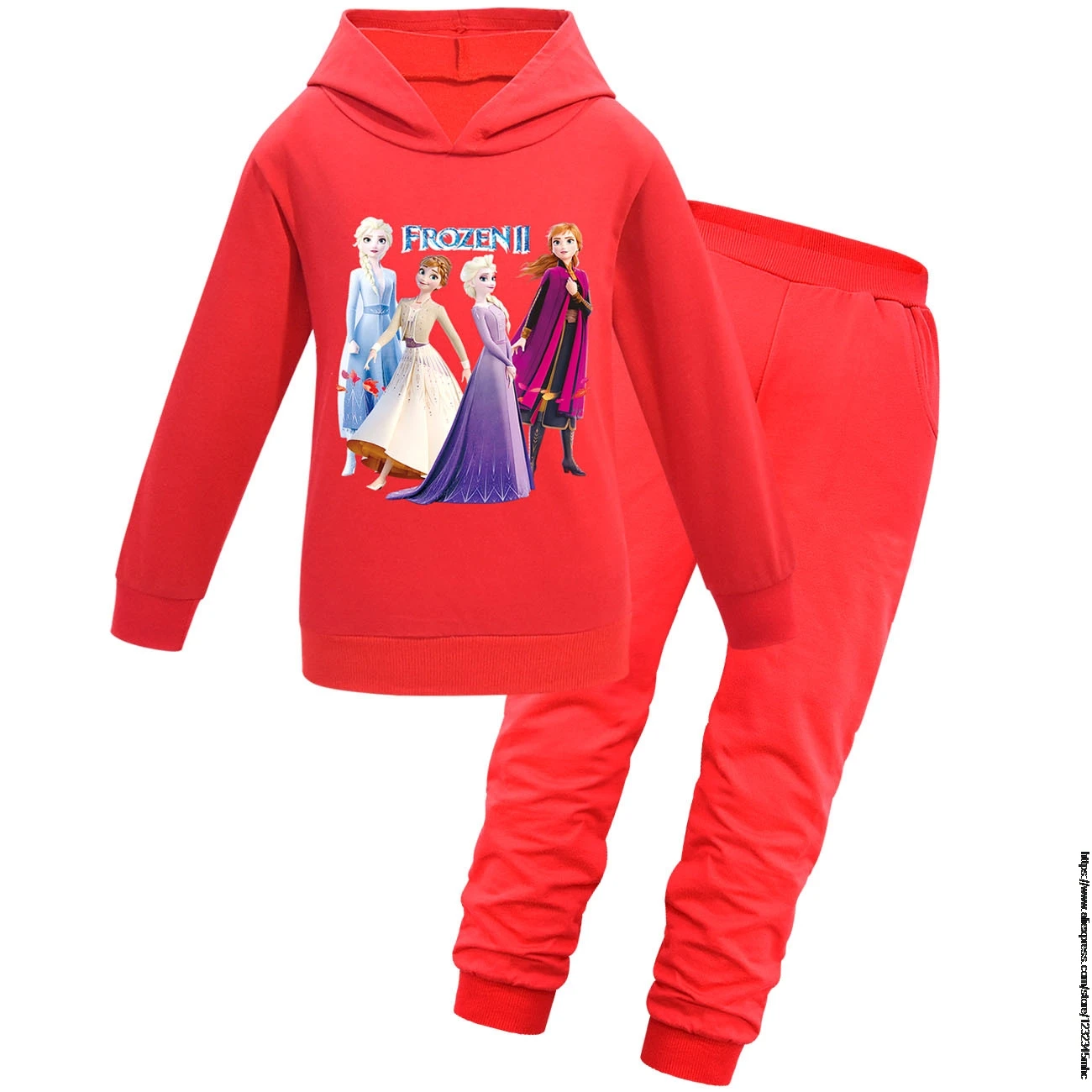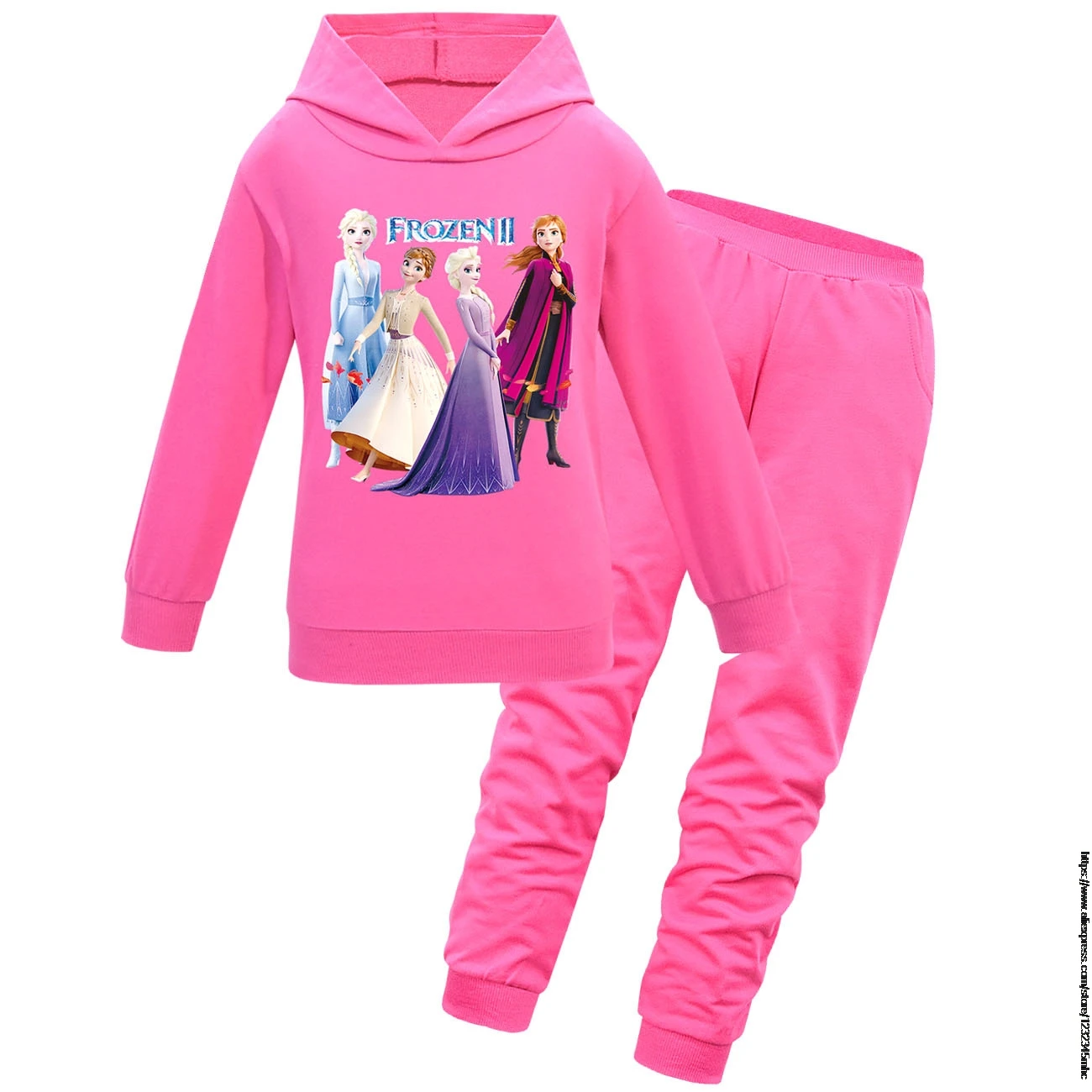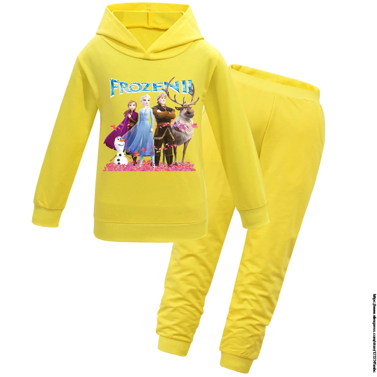Эльзы из мультфильма "Холодное сердце", состоящие из кофты с капюшоном и штанов, костюм для девочек-подростков, одежда для мальчиков и девочек, детская одежда для сна, Disney, трикотажный свитер, костюм с кофтой; Осенне-зимняя детская одежда с рисунком, Спортивная кофта, худи