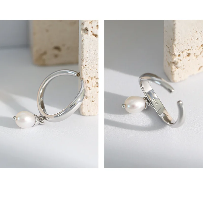 F.I.N.S в Корейском стиле модные элегантные S925 серебряные кольца для женская подвеска из пресноводных жемчужин (Открытое кольцо серебро 925 ювелирные украшения