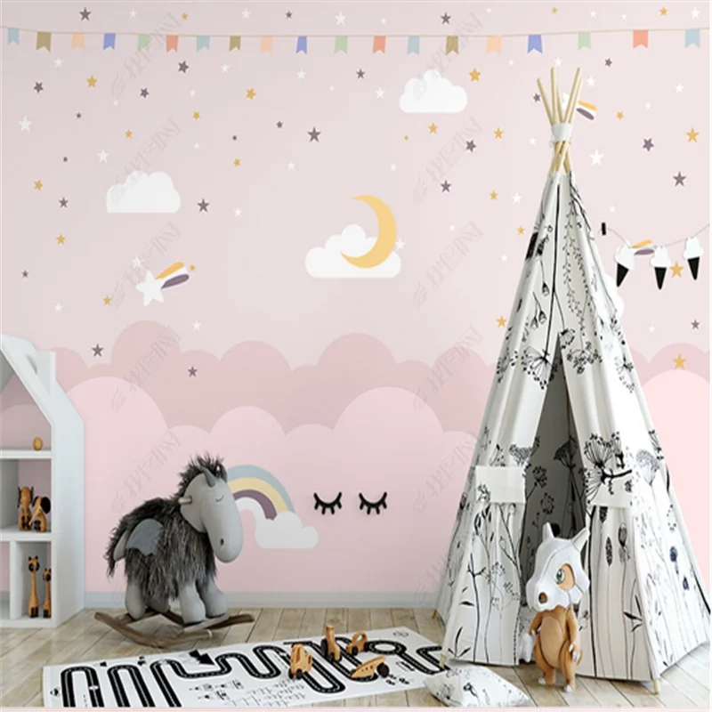 Скандинавские розовые облака, звездное небо, обои для девочек, 3D обои для детской комнаты, спальни, декор для детской комнаты, Настенные обои 3D