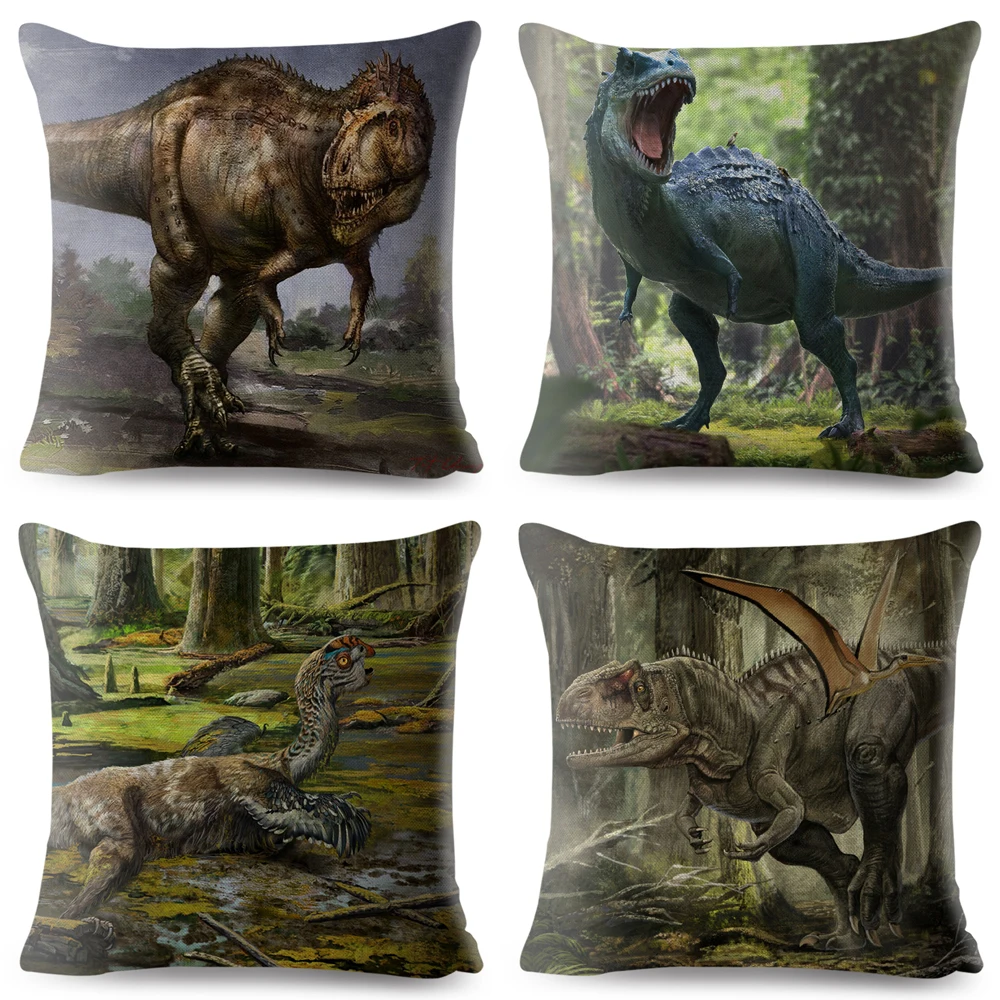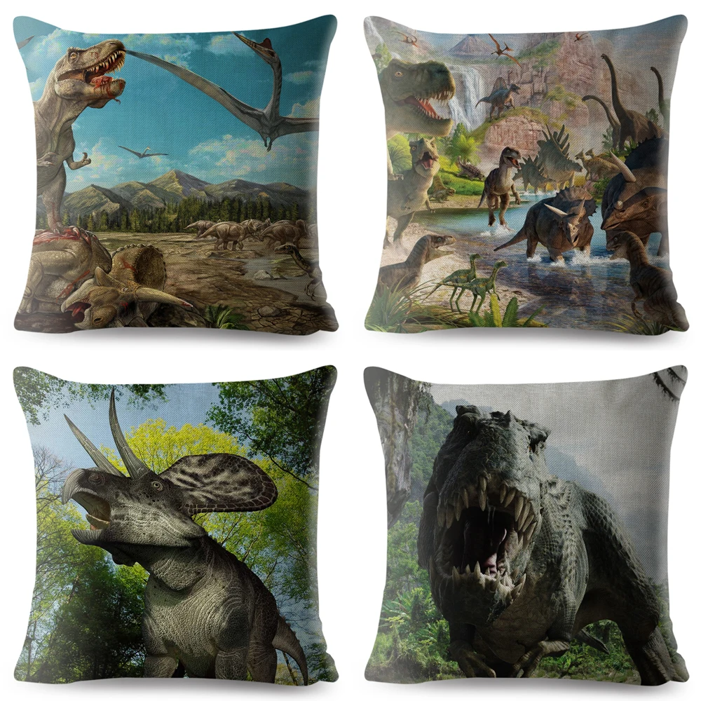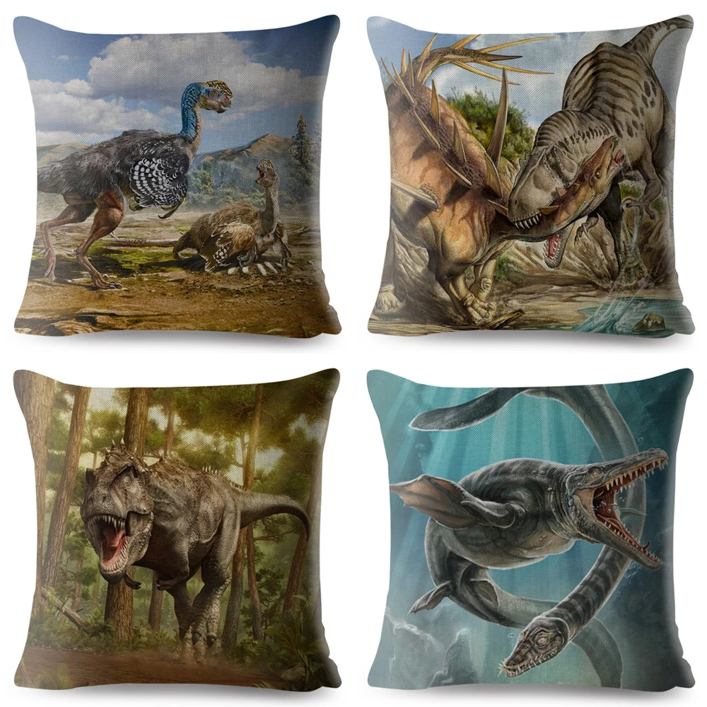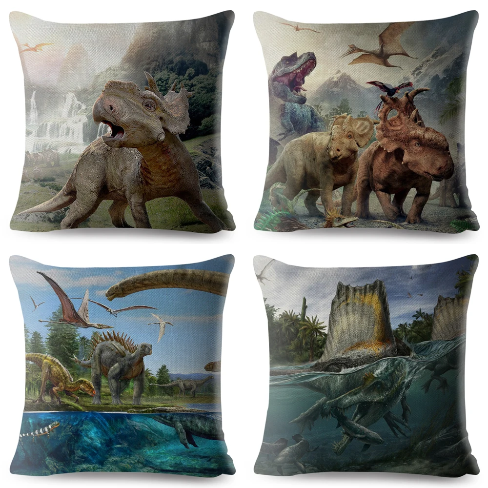 Льняная наволочка с рисунком динозавра, 45*45 см