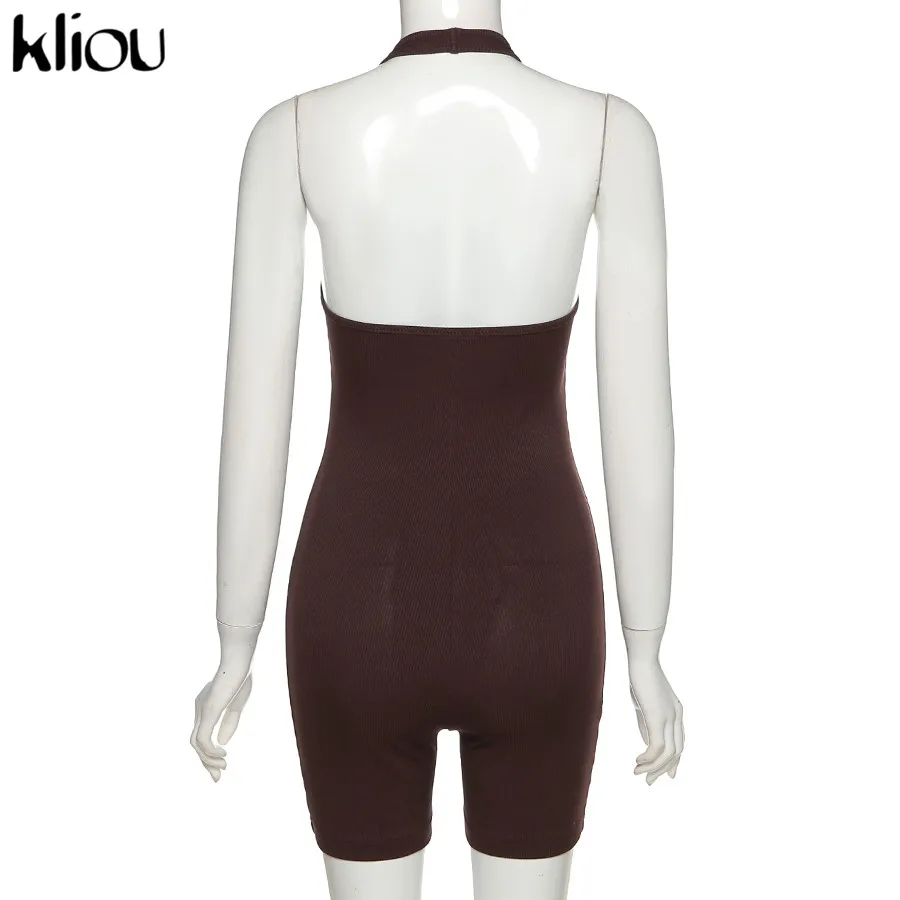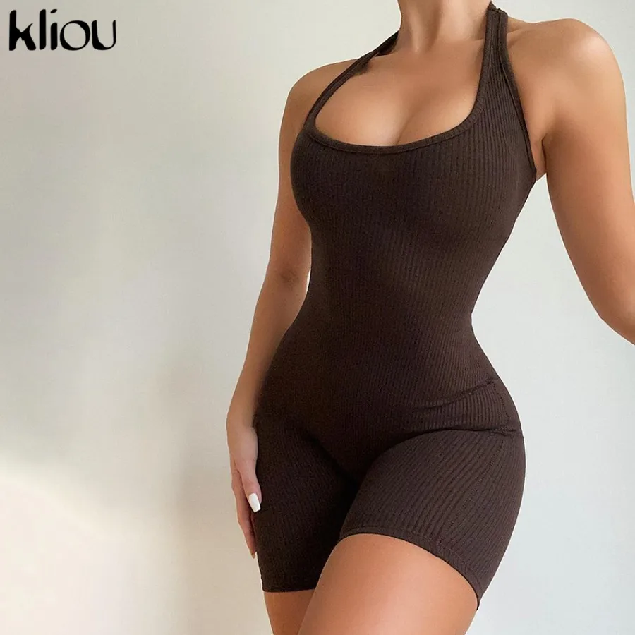 Женский спортивный комбинезон с лямкой на шее, с открытой спиной