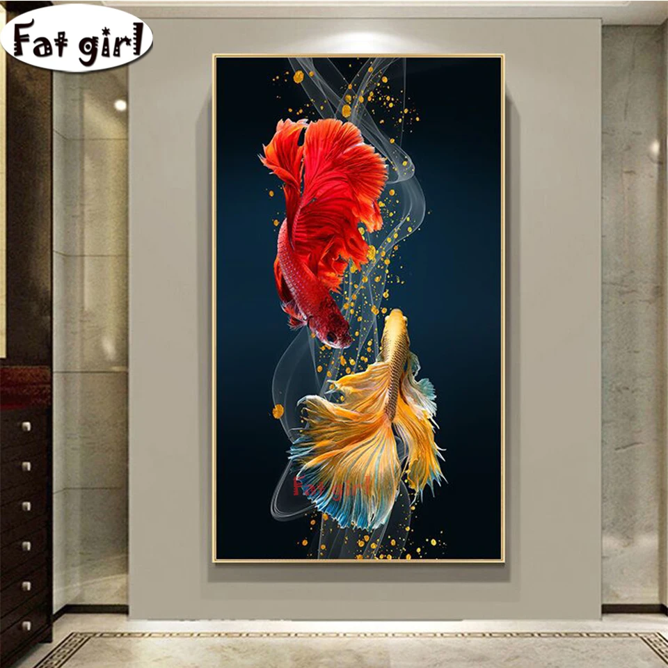 Алмазная живопись, вышивка крестиком с рыбками кои, полная квадратная круглая вышивка стразы, мозаика, украшение для дома