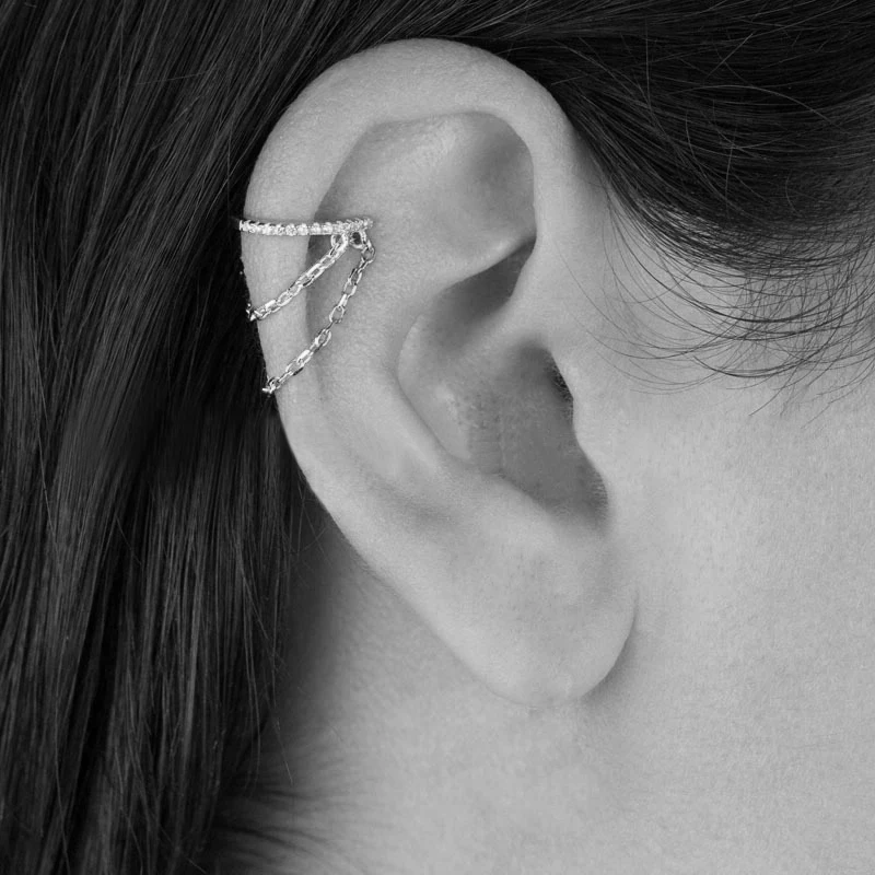 Двойная Цепочка инкрустированная клипса для ушей в европейском и американском стиле без ушей с отверстием для ушей сэндвич-слой подвесные циркониевые серьги
