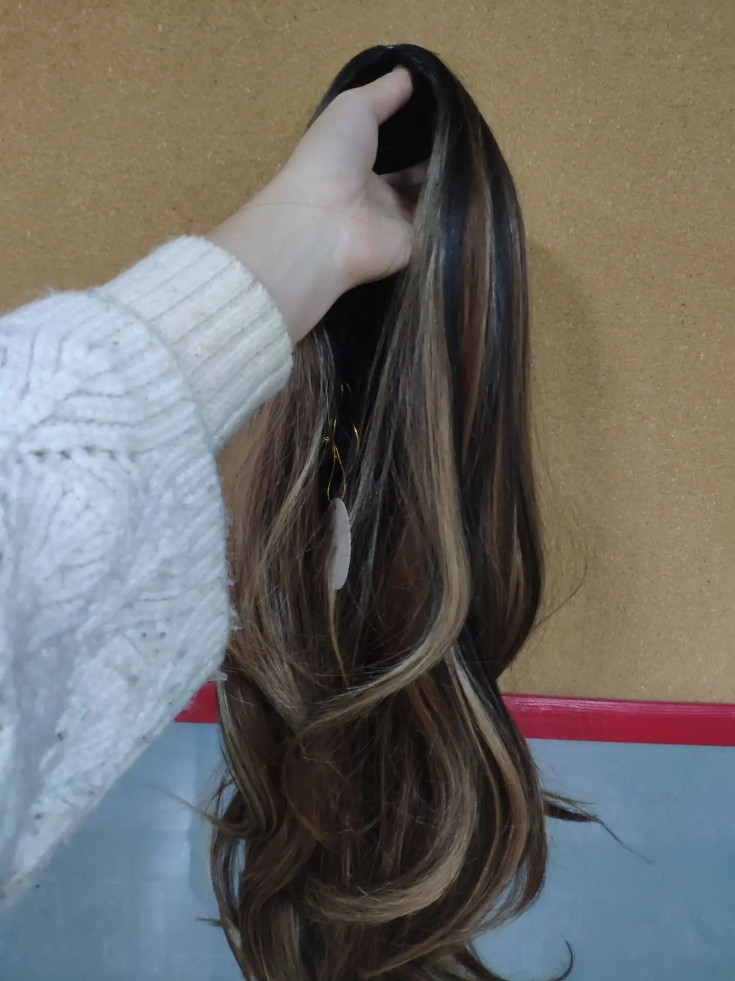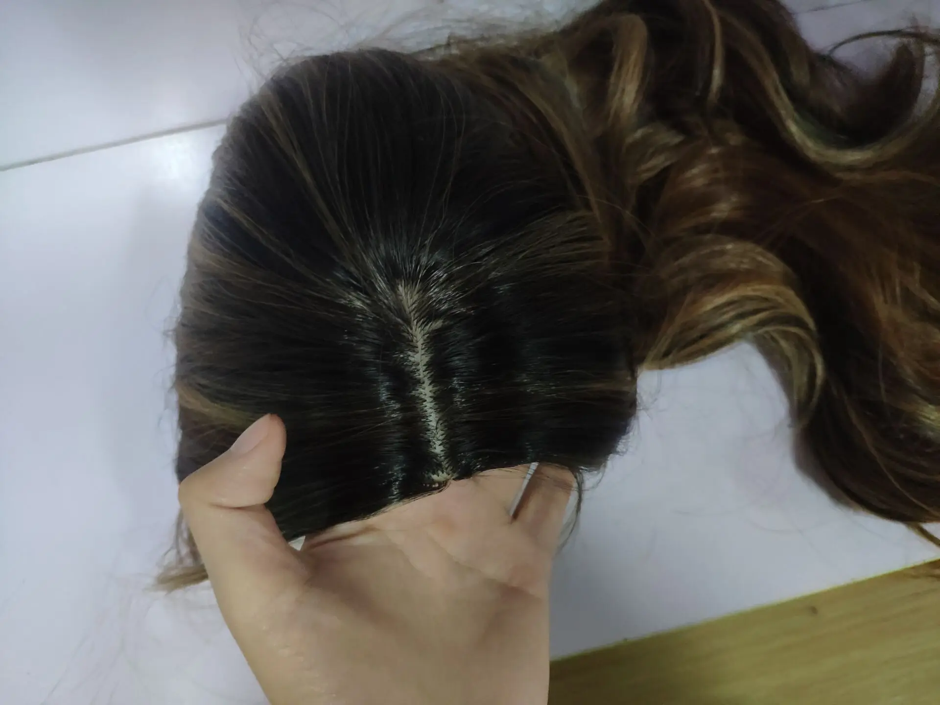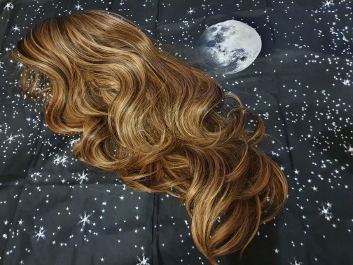 Парик соответствует описанию, волосы длинные, их много и они толстые, толстые. Был сделан красивый переход цвета. Мне понравился пробор, выглядит относительно естественно. С нижней стороны даже новый парик трудно расчесать, он горячий и тяжелый, больше для фотографий, чем для ношения.