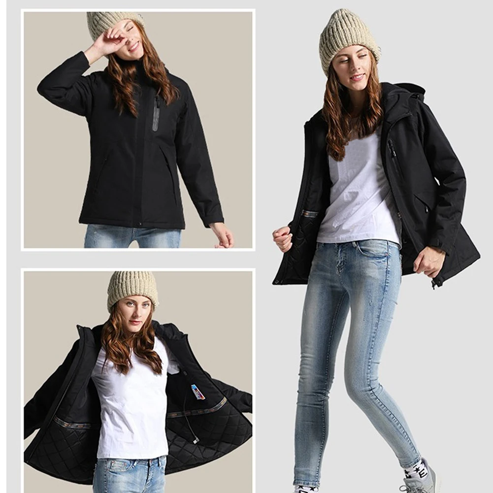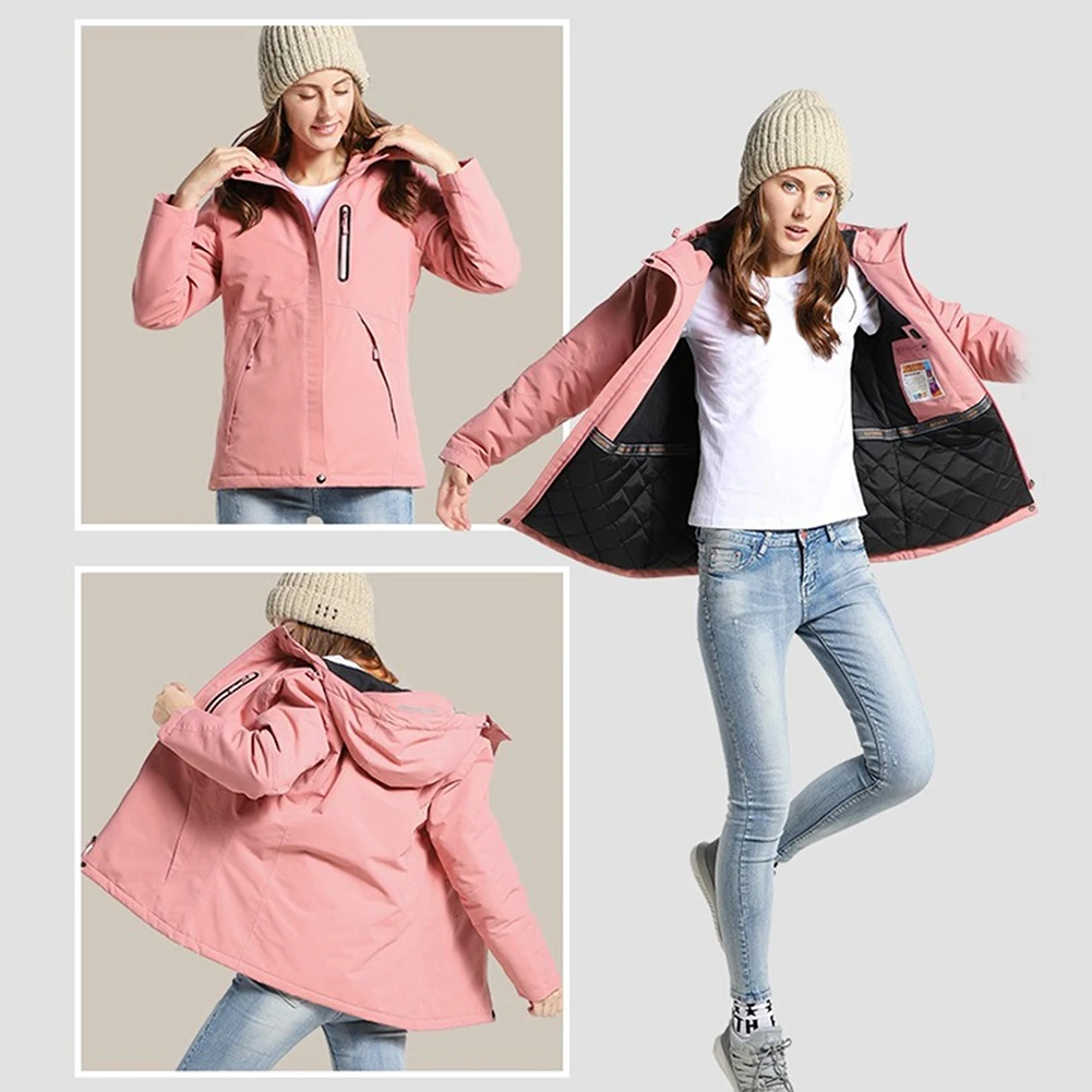 Женские нагретой куртки с капюшоном теплая ветровка Водонепроницаемый, 3 Регулируемый воздушный поток для зимы на открытом воздухе