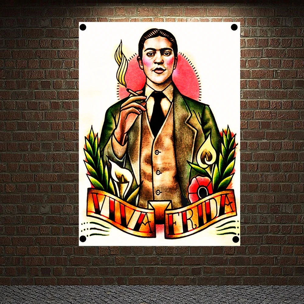 Тату-баннеры VIVA FRIDA, винтажная Картина на холсте, настенные плакаты с художественным принтом, домашний декор, настенные подвесные флаги с 4 втулками в углах