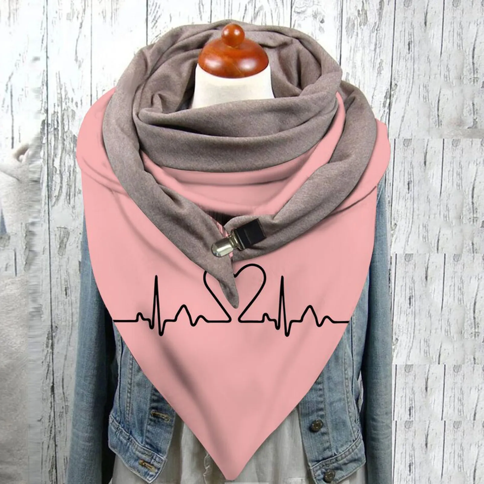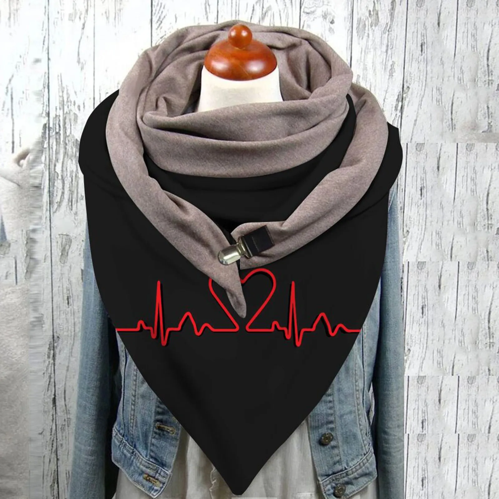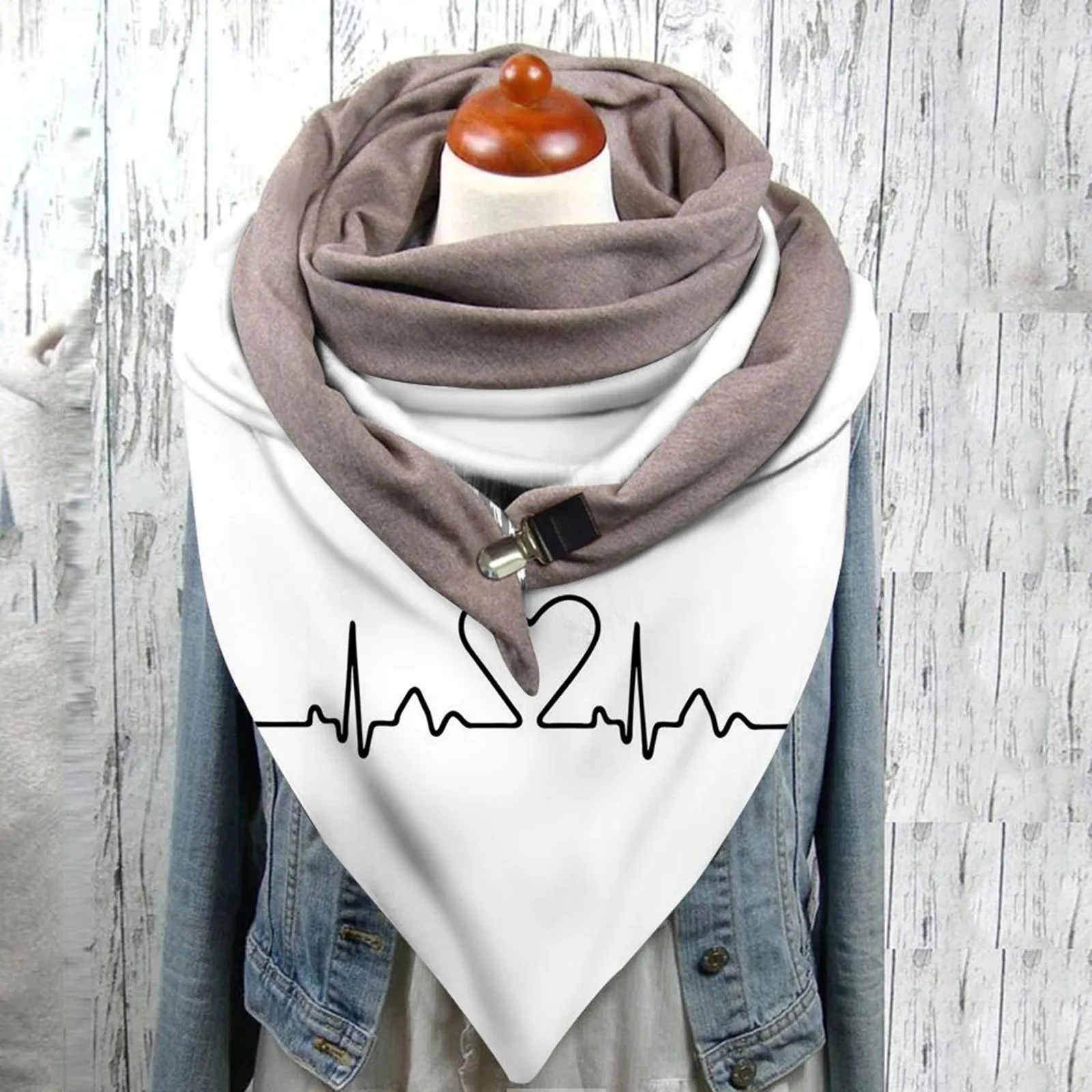 Модный женский теплый нагрудник, шарф на шею на осень и зиму, ветрозащитные шарфы на пуговицах, двухслойные женские шарфы с пряжкой и принтом