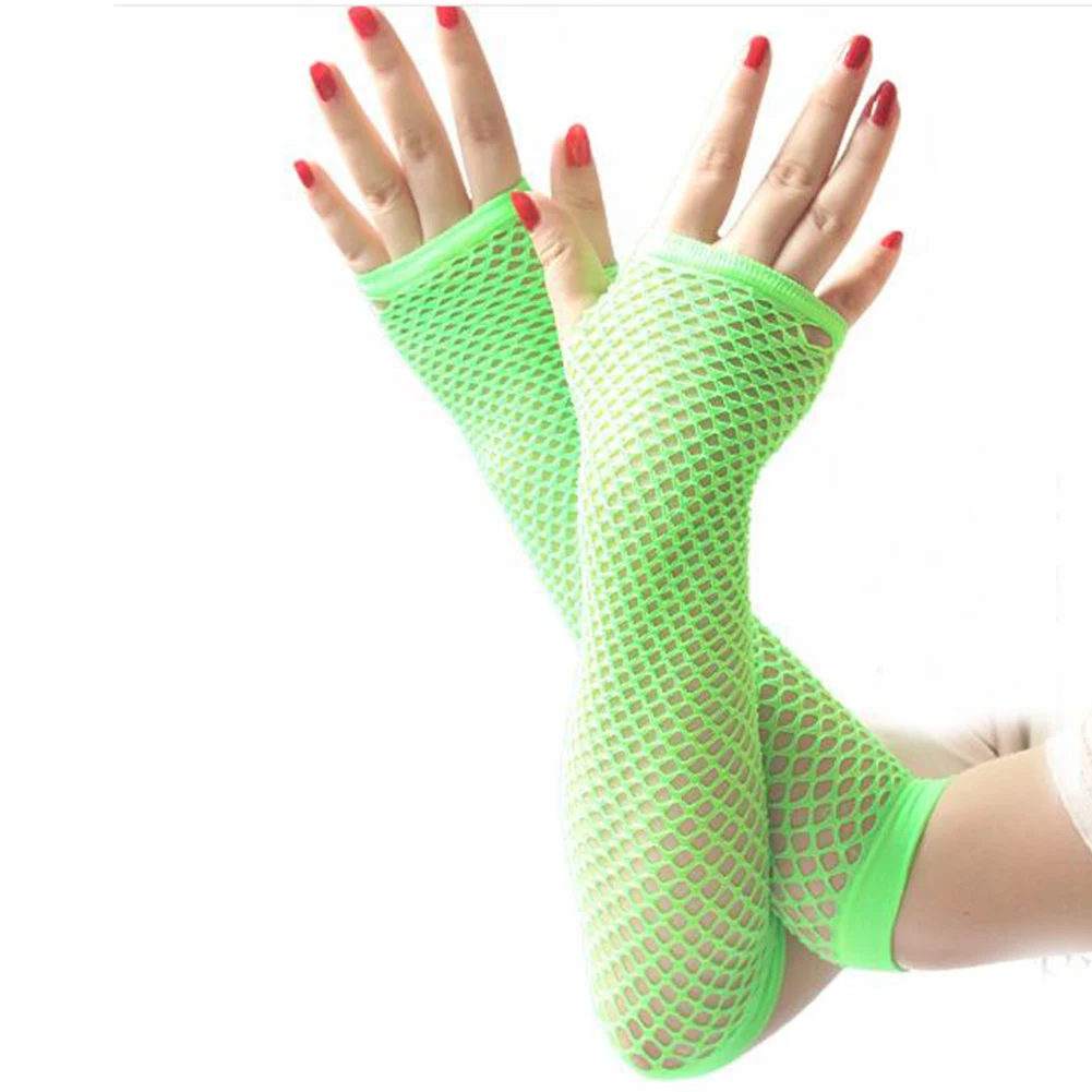 Кружевные сетчатые ажурные перчатки, женские сексуальные танцевальные костюмы, Вечерние перчатки без пальцев длинные митенки