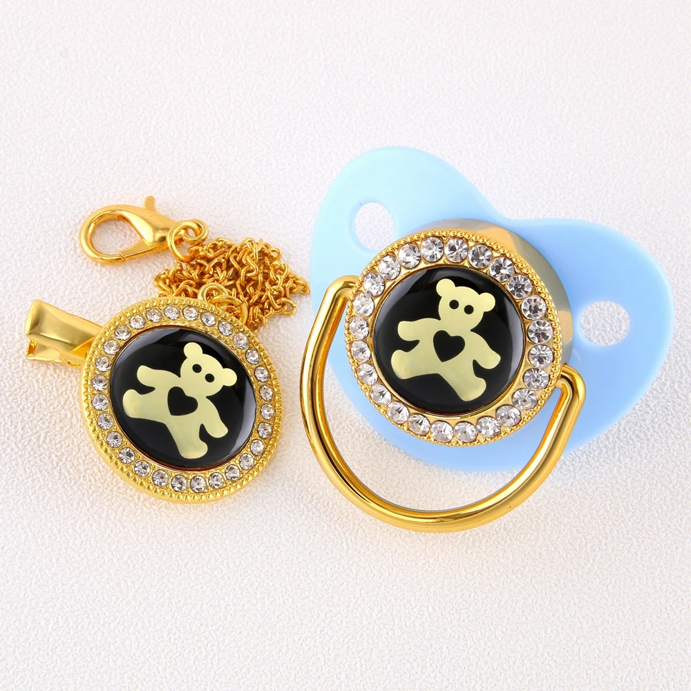 Пустышка для сна с золотым медведем и зажимом, 0-18 месяцев, уникальный дизайн, Ортодонтическая Соска для сна