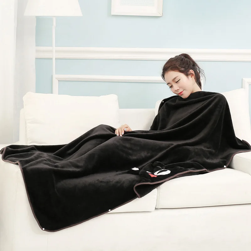 Фланелевое Одеяло с капюшоном, милый мультяшный коралловый бархат, супер мягкое теплое одеяло для дивана-кровати, уличное детское одеяло, подарки