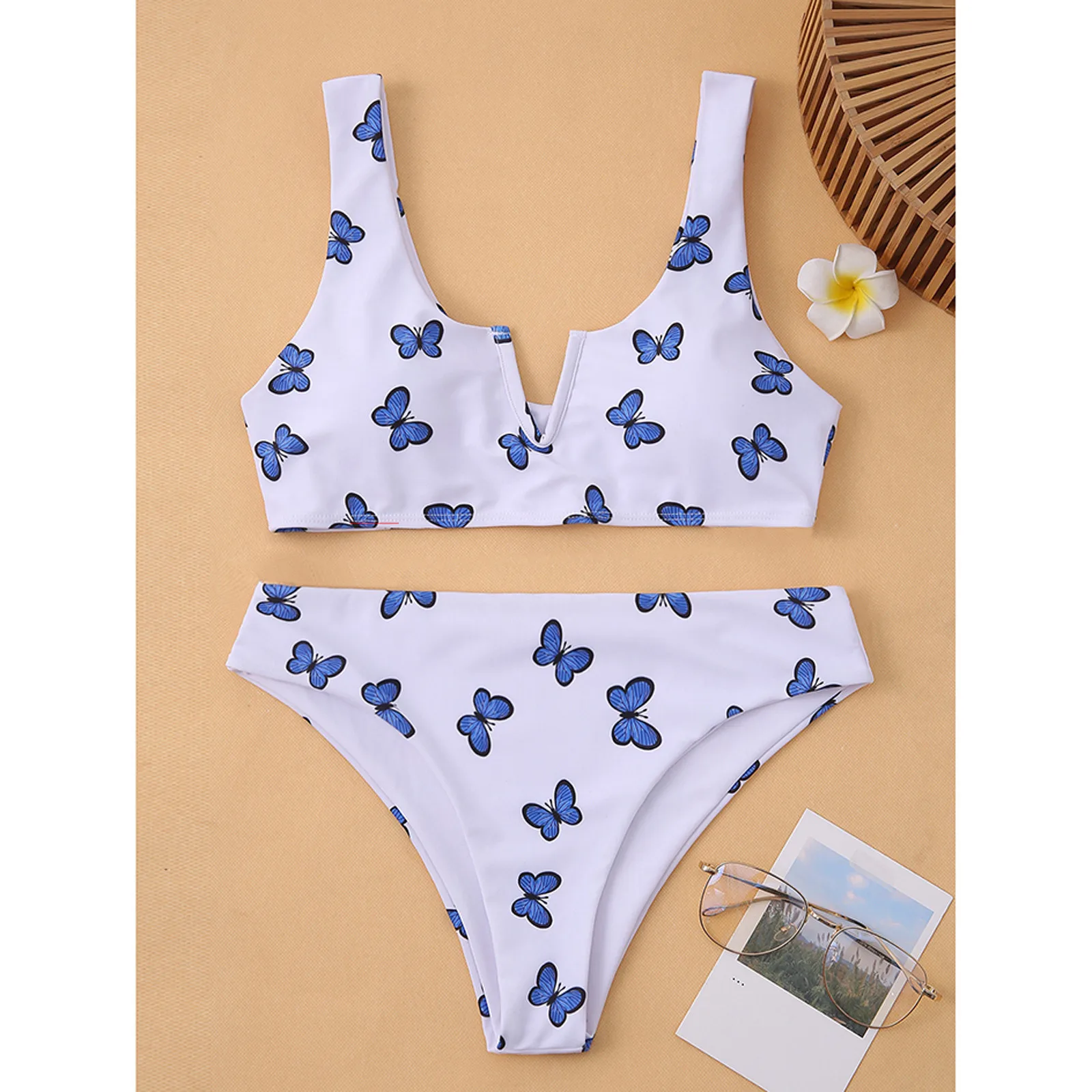 Сексуальный комплект бикини с высокой талией, купальник с принтом, бикини с разрезом, купальник из двух частей, летнее бикини, танкини, купальный костюм для женщин #40