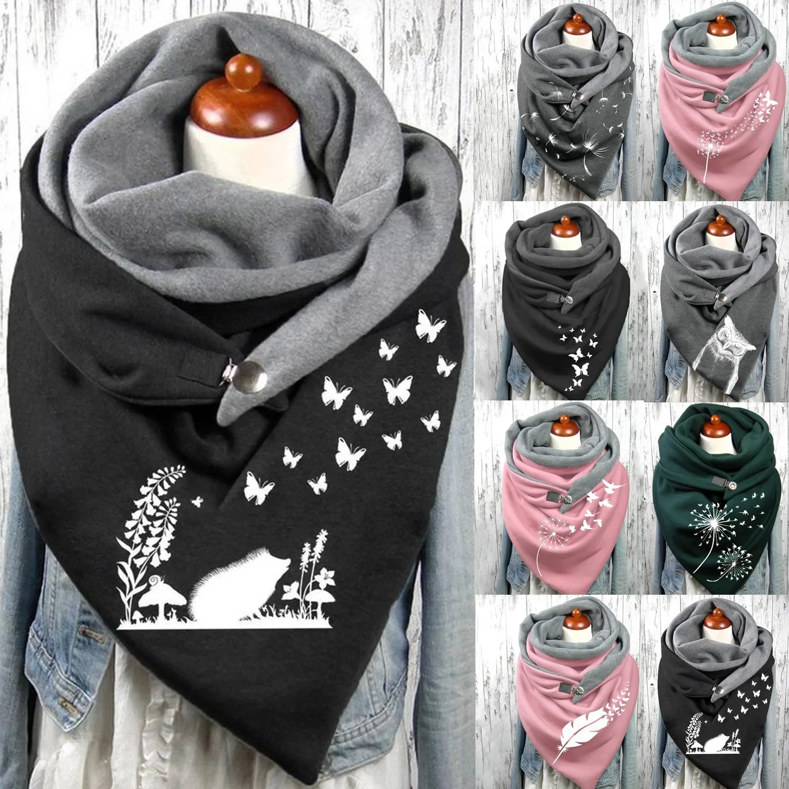 Женский шарф, шали с принтом на пуговицах, модные женские мягкие Шарфы с принтом на пуговицах, повседневные теплые Шарфы, шали и маски