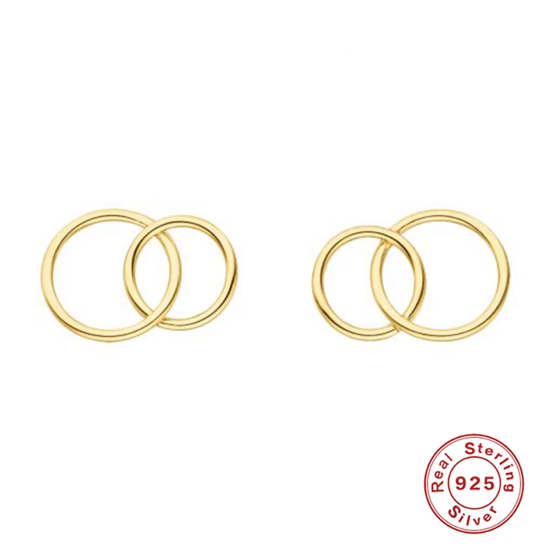 Автоклав 925 стерлингового серебра INS простой Изысканный двойное кольцо, серьги со шпилькой, для женщин, пирсинг серьга серьги ювелирные изделия pendientes