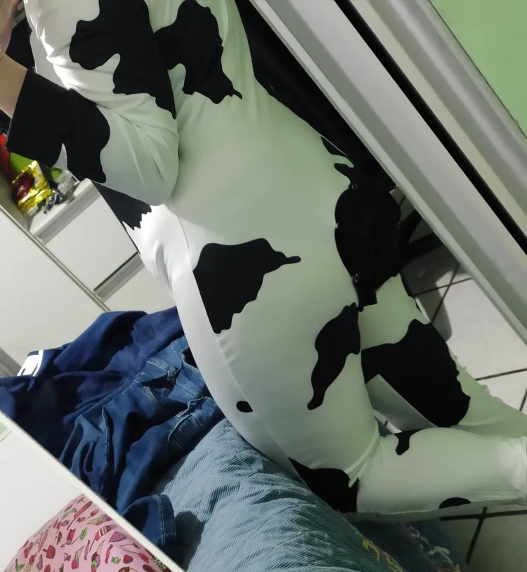 Пижама женская с принтом коров, Пижама на пуговицах с вырезом, Пижама для взрослых, клубный дизайнерский комбинезон с глубоким вырезом, 4
