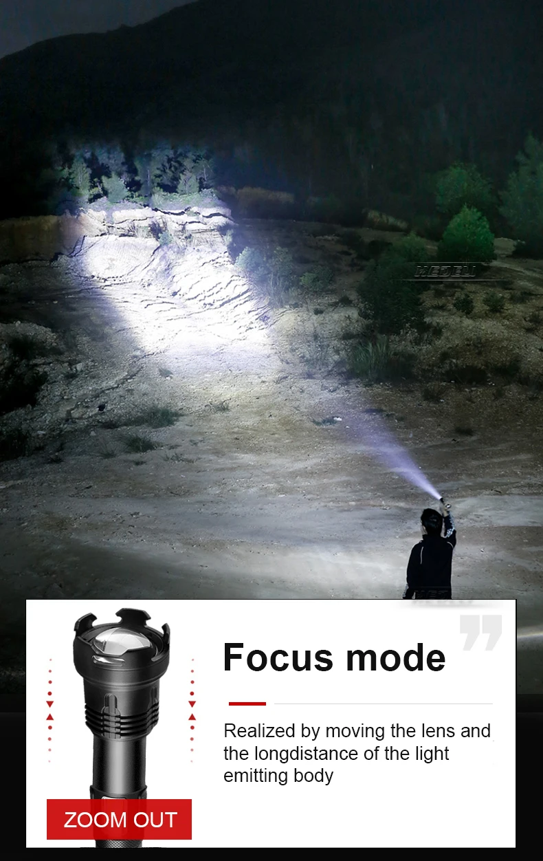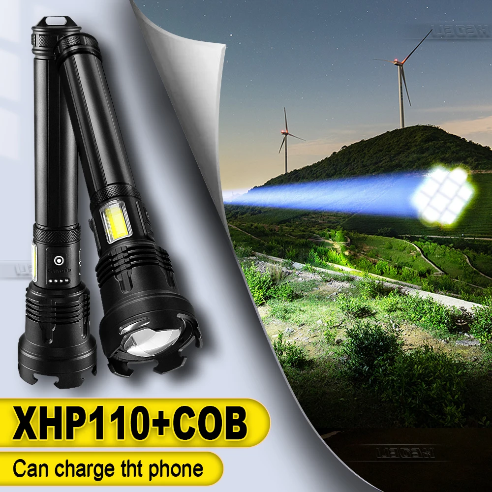Мы ориентируемся на качество продукции и обновления. Предоставление покупателям новейших и высококачественных продуктов-это наш принцип обслуживания. Поэтому мы разработалиXHP110Фитиль для этого фонарика, который является самым мощным и ярким фитилем в AliExpress. Его яркость выходит за рамки вашего воображения. Он также имеет супер яркийCOB светильник, Он также может быть использован в качествеМобильный источник питанияДляЗарядка мобильных телефонов, Расстояние освещения более чем1200 метров, И этоВодонепроницаемый. Супер фонарик с водонепроницаемой оценкойIPX4!