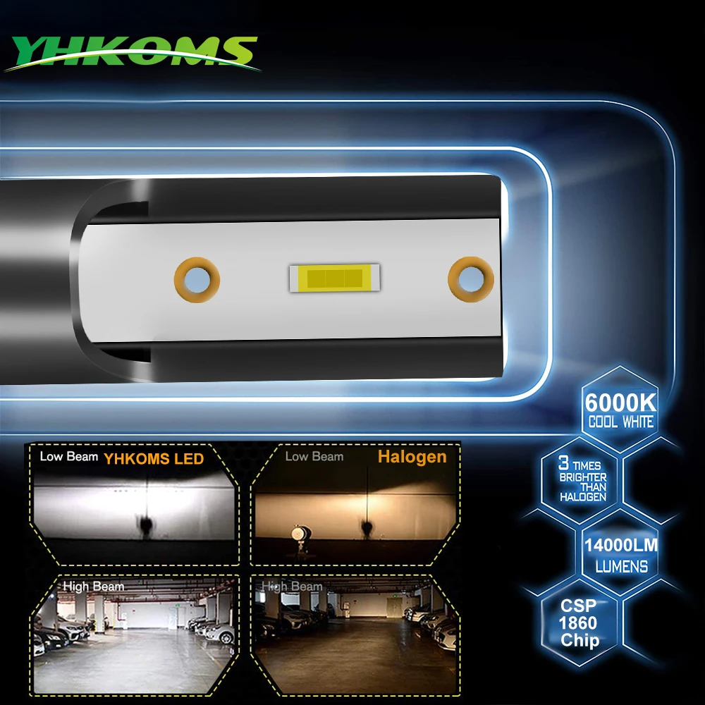 YHKOMS автомобилей светодиодные лампы для Авто Canbus со светодиодными кристаллами для 14000LM 60 Вт H4 светодиодный H7 H1 H8 H11 9005 9006 Авто фары светодиодный свет для автомобиля 12V 6000K