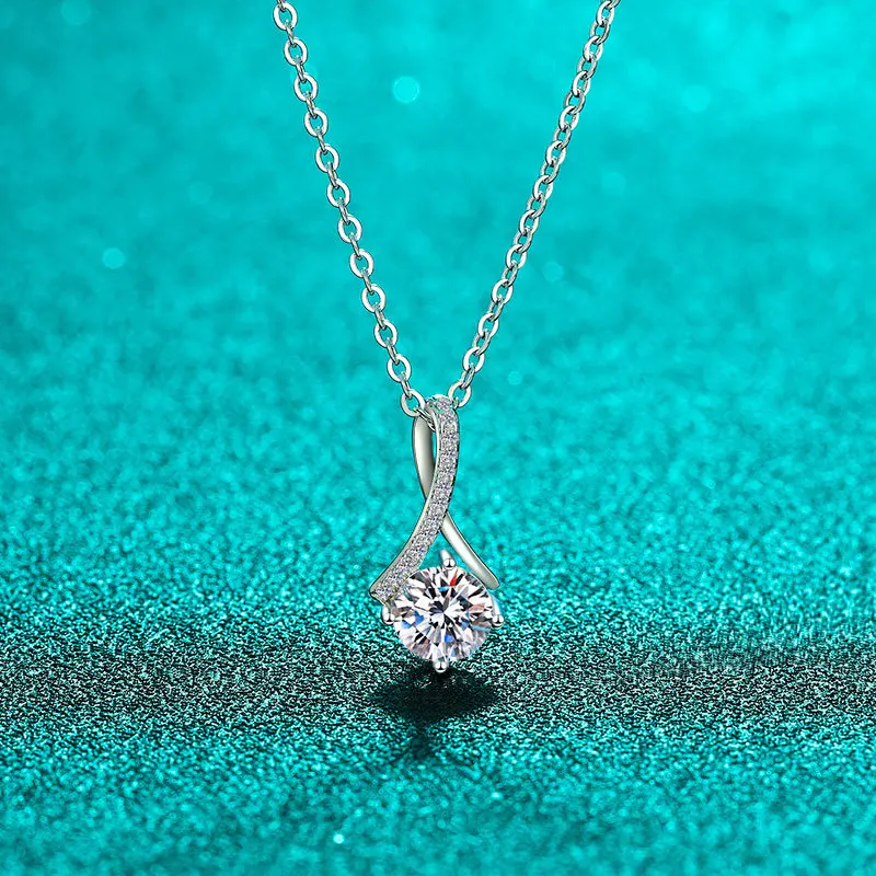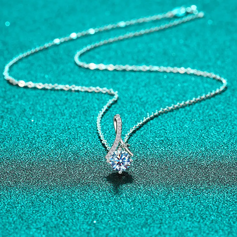1 карат алмазов тест D Цвет белого и синего цветов для муассанит бант ожерелье с подвеской для женщин серебро 925 оригинальный сапфир ожерелье цепь
