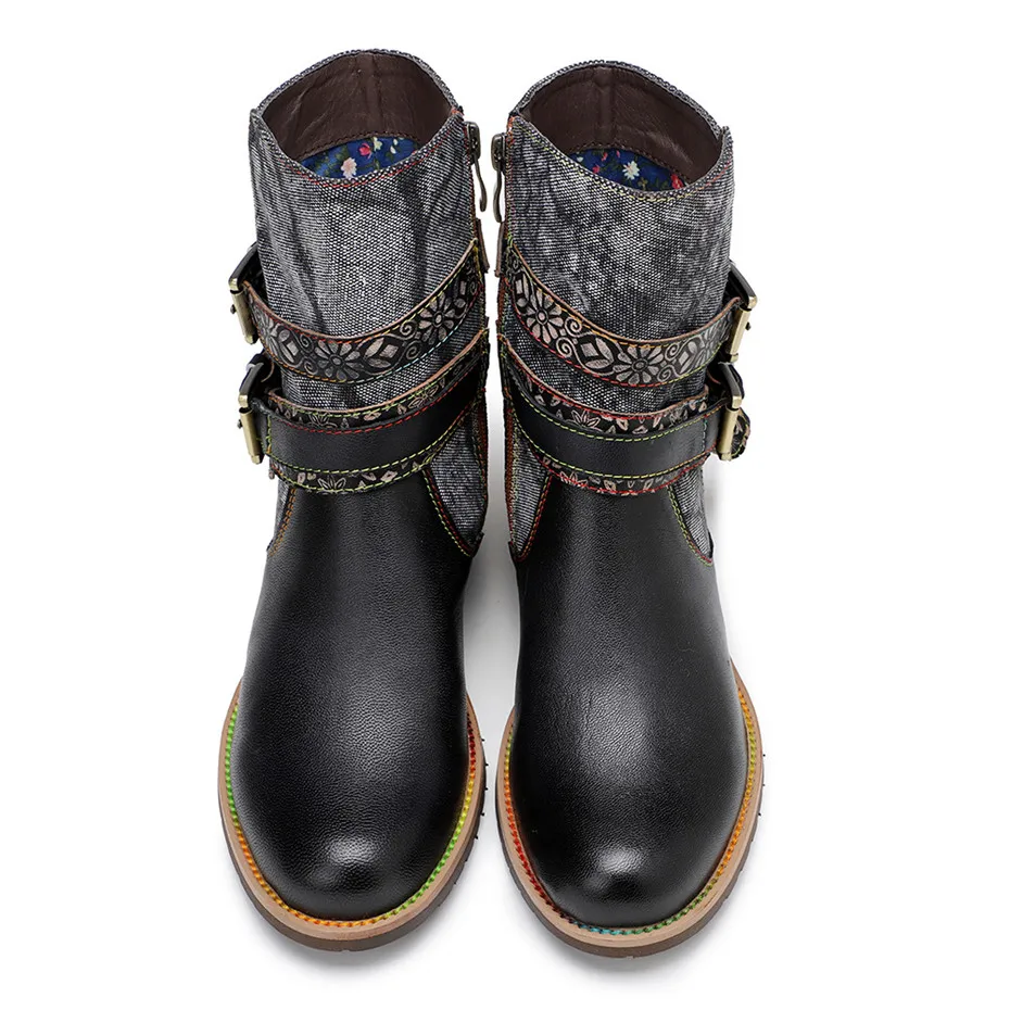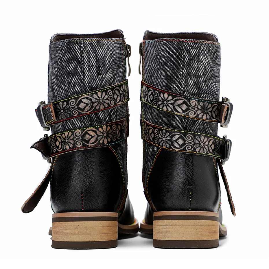 Женские ботильоны в стиле ретро D Knight, повседневные ботинки ручной работы из натуральной кожи с этническим цветком, обувь в западном стиле, зима 2021