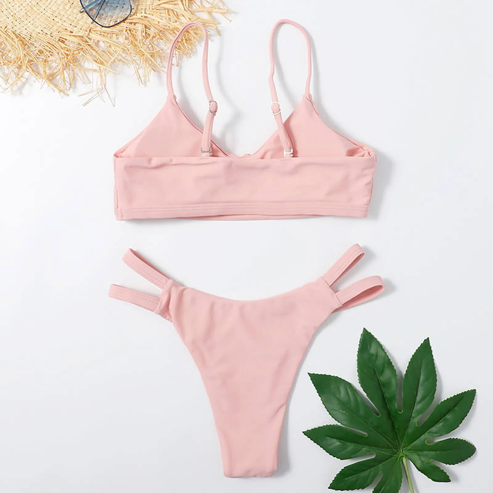 Женский модный комплект бикини, пикантный однотонный купальник-бики...