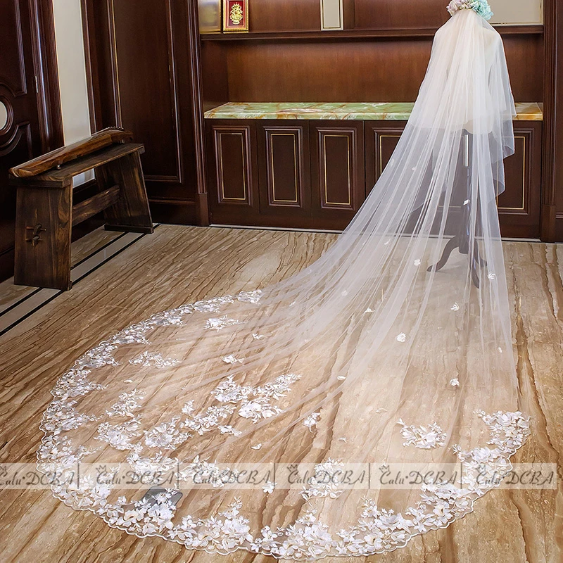 Свадебная фата, роскошная белая Фата с 3D цветами и кружевом для не...
