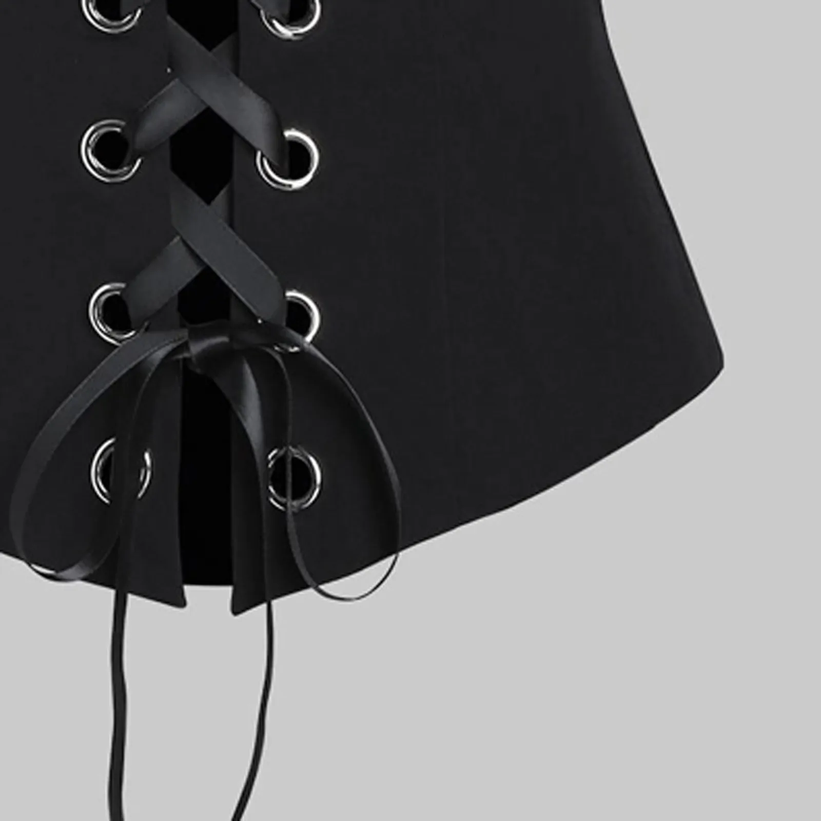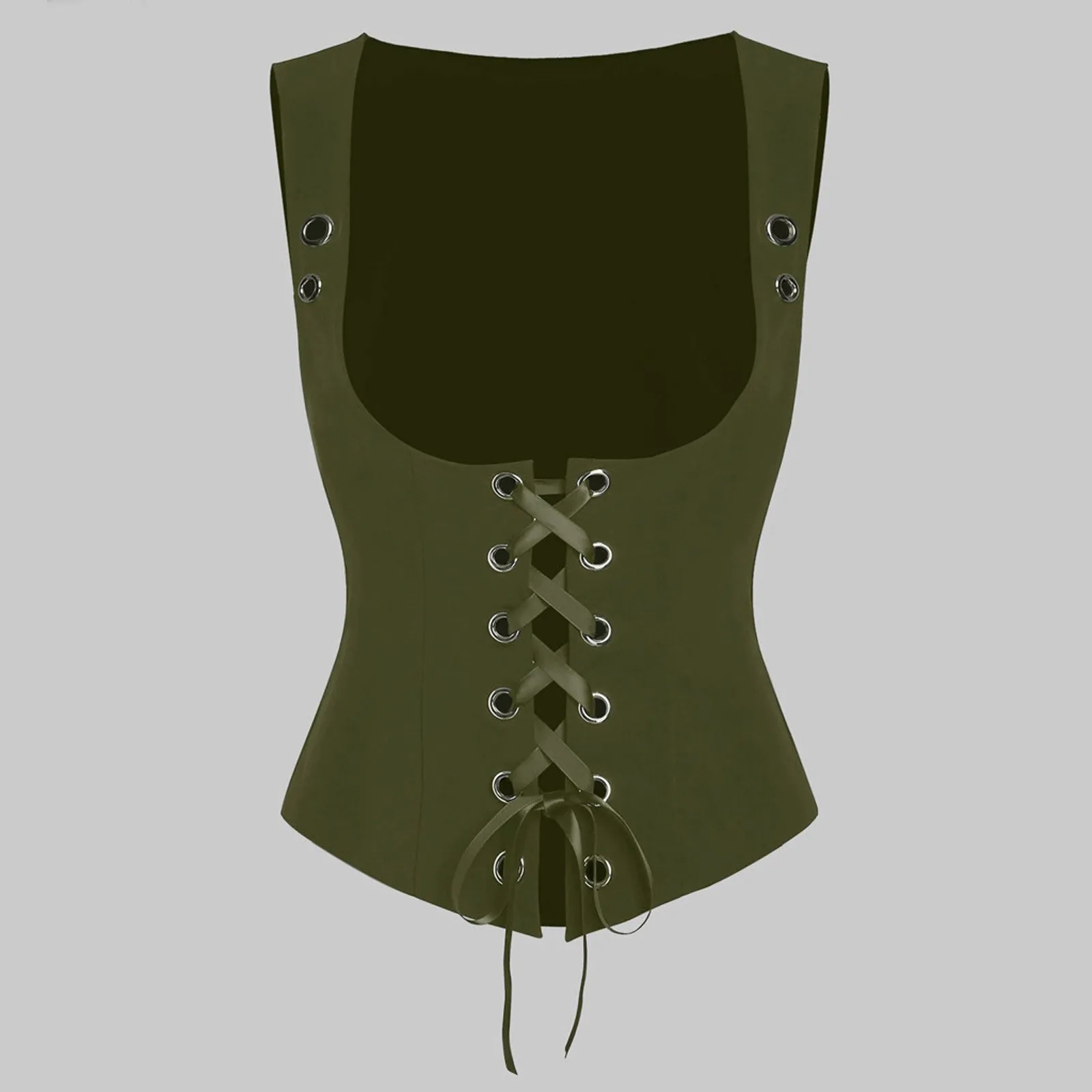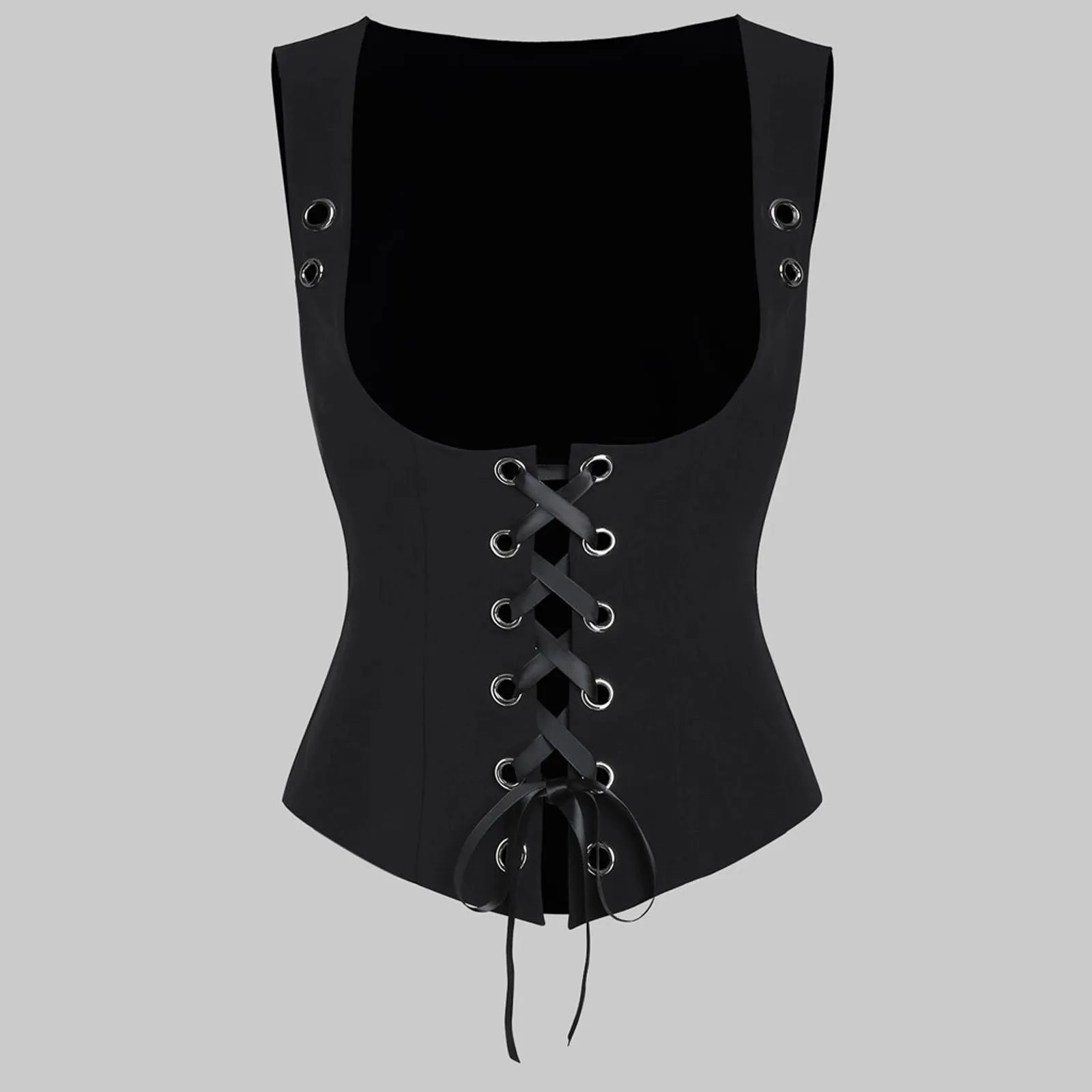 Футболка женская в стиле Харадзюку, однотонная Повседневная безрукавка с перекрестными кольцами, на шнуровке, жилет, топ, футболка, женские майки