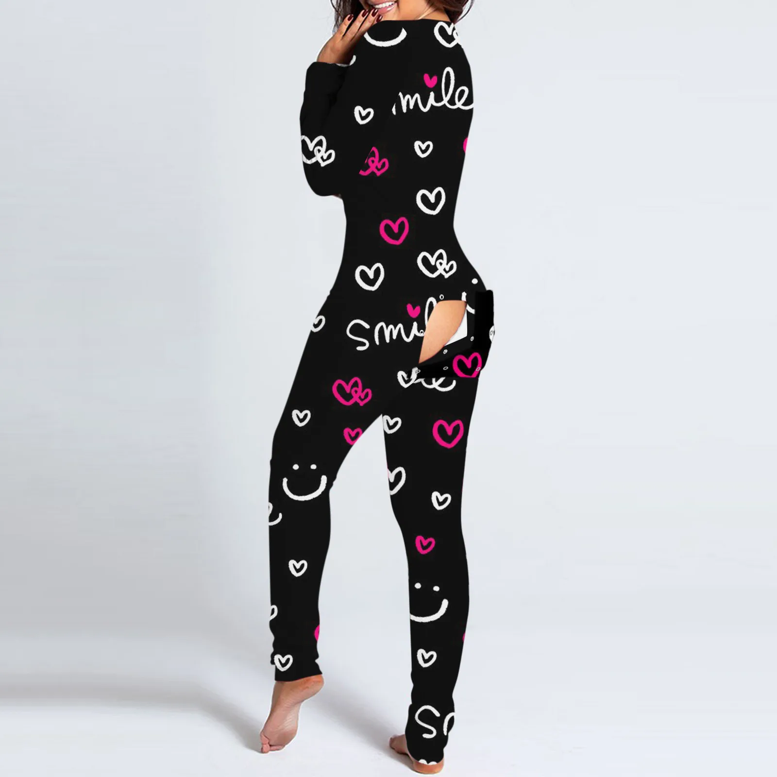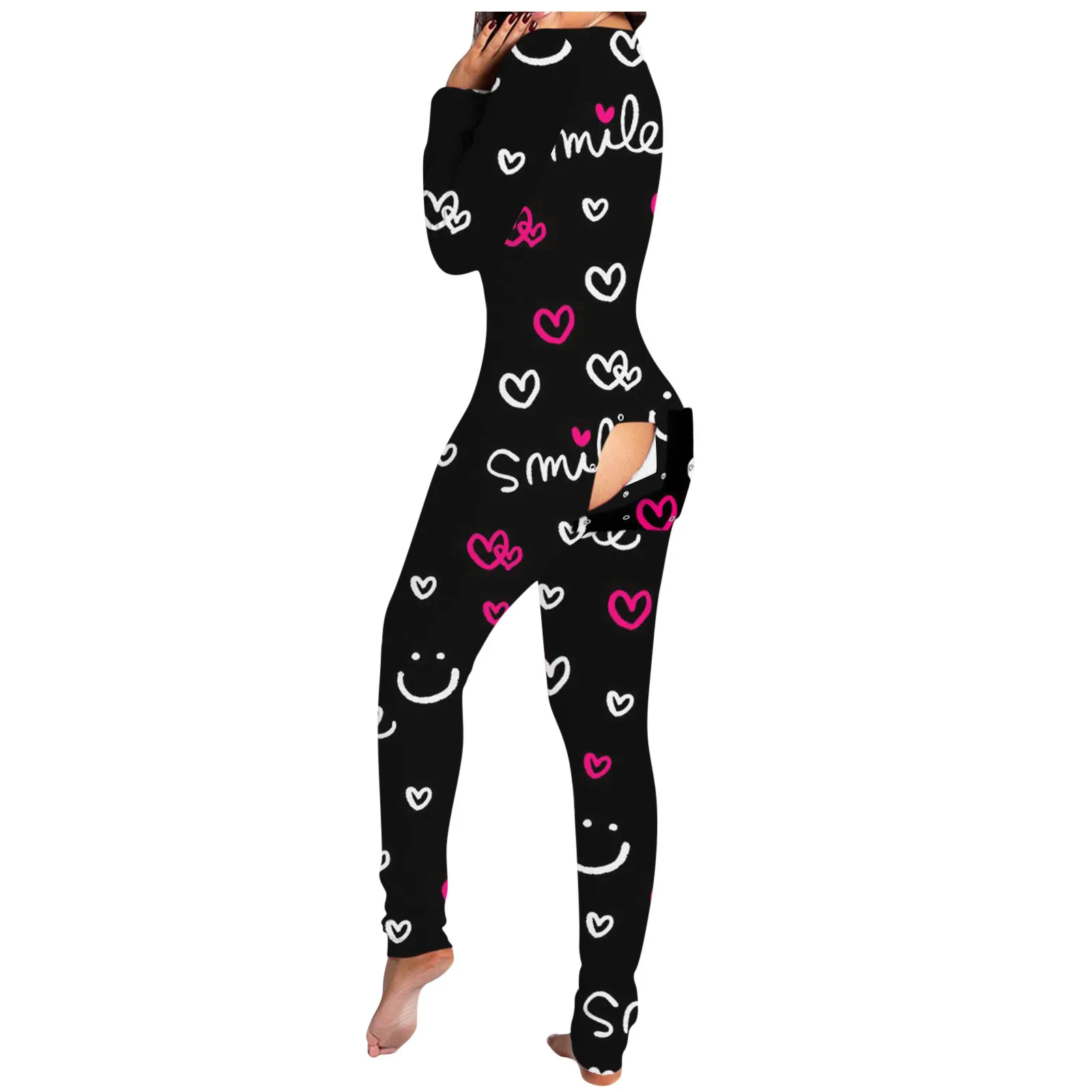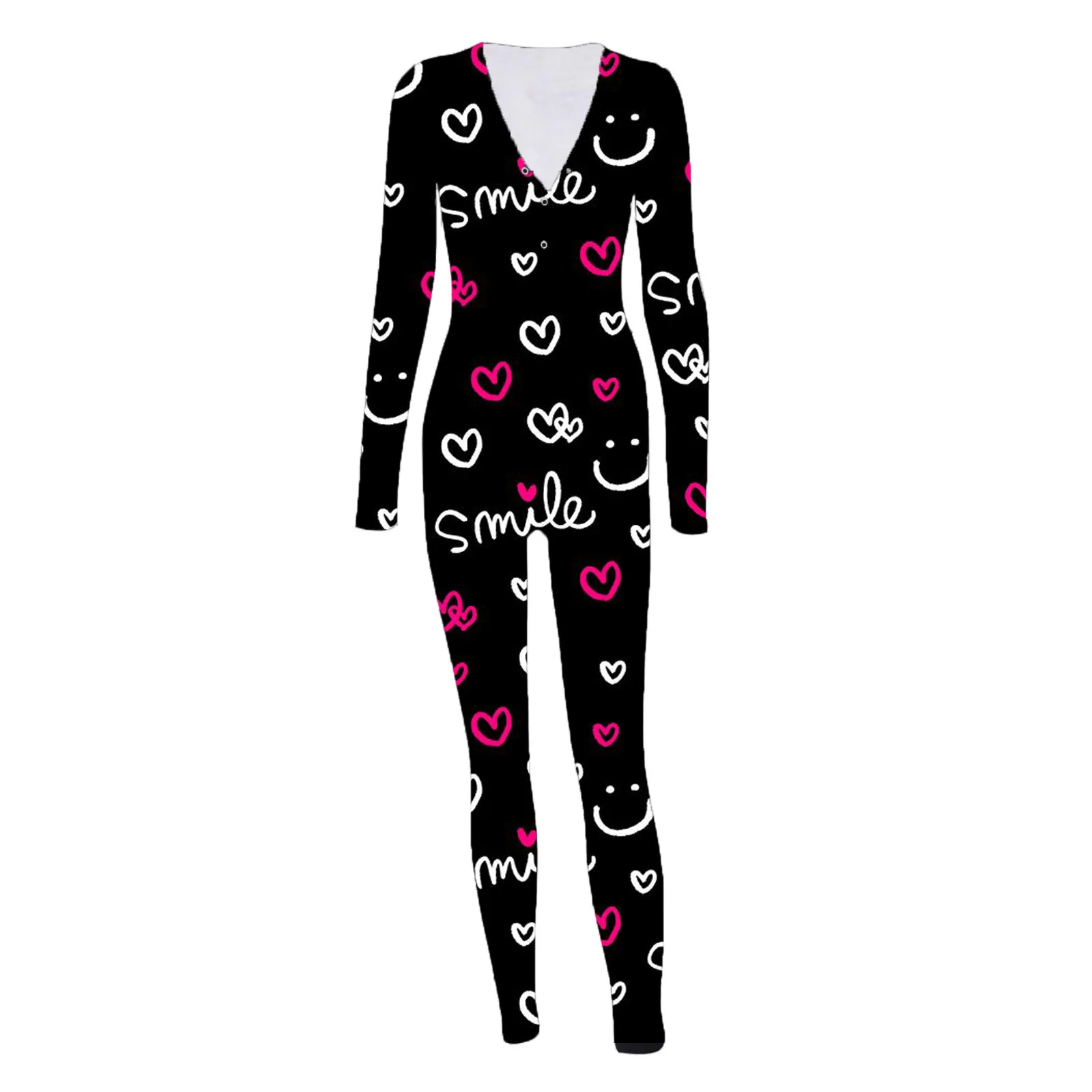 Цельные женские модные с принтом любящее сердце с пуговицами, для комбинезон сексуальный комбинезон с v-образным вырезом зимняя одежда с длинными рукавами; Ночное белье, подарок на день Святого Валентина, одежда для сна