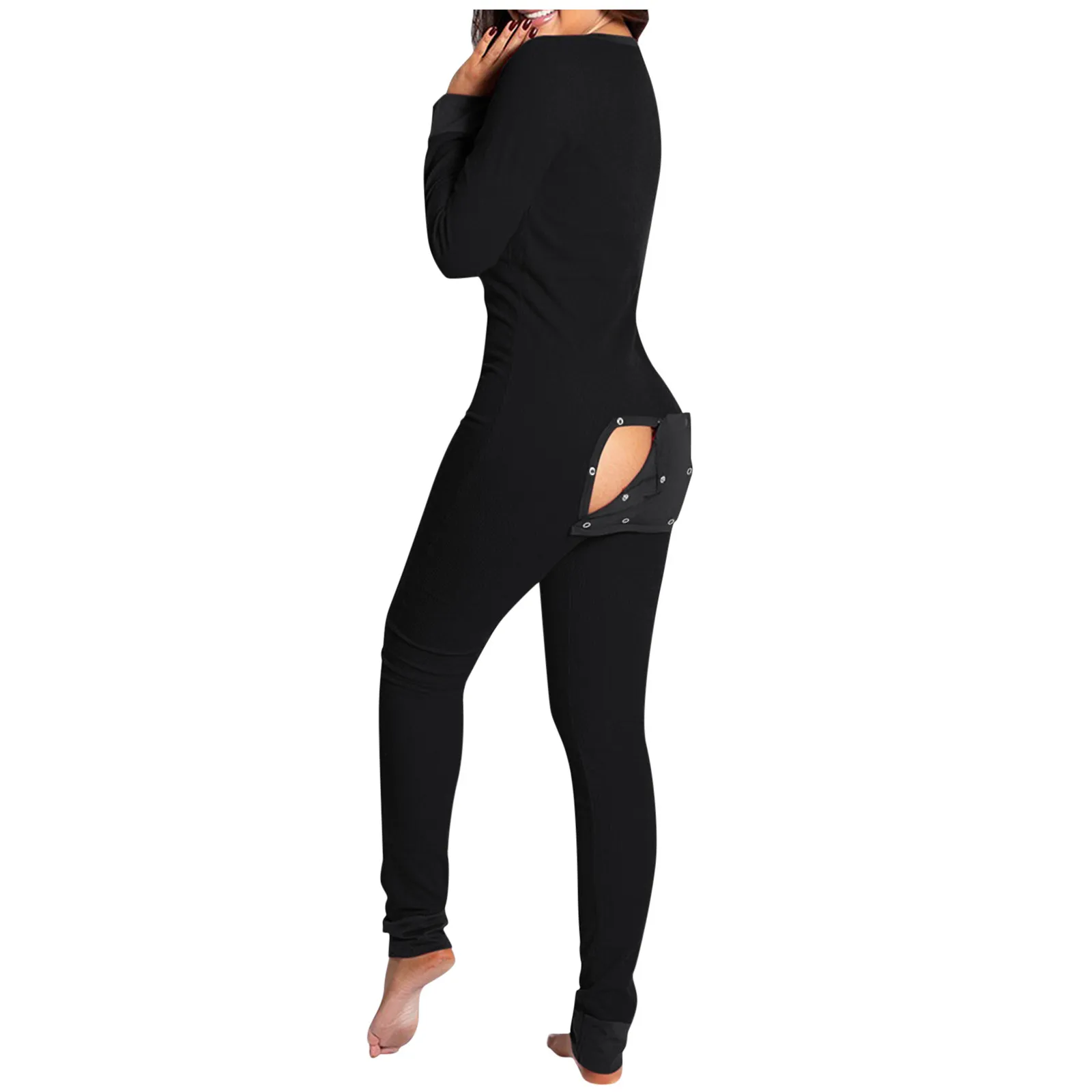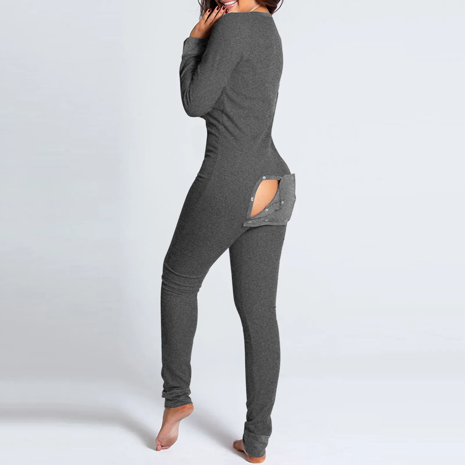 Комбинезоны Для женщин пуговицы для пижамы вниз функциональный отво...
