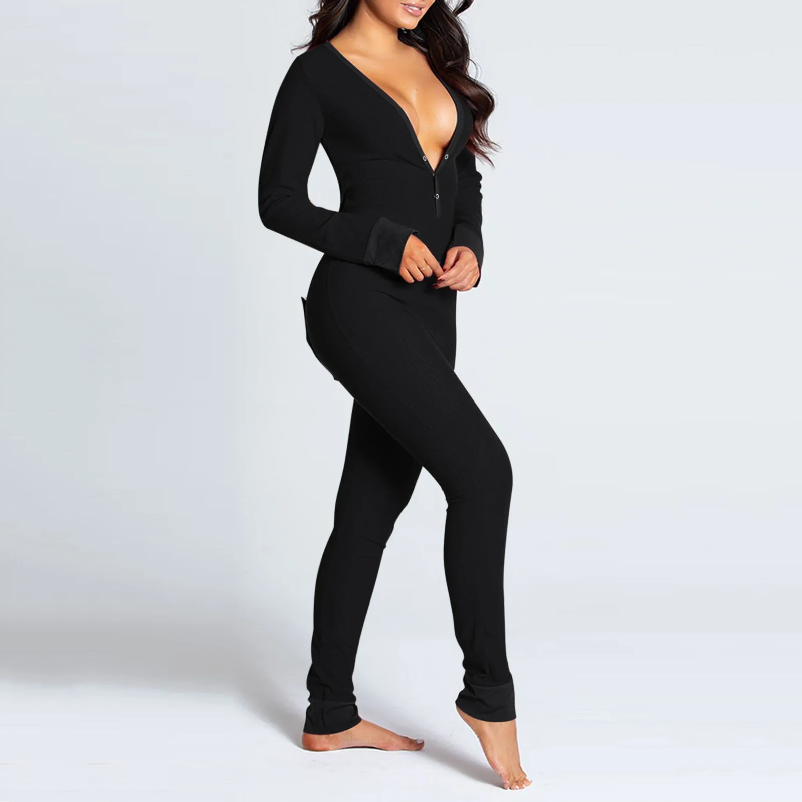 Пикантная женская пижама-комбинезон с V-образным вырезом и пуговица...