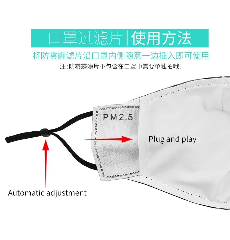 Функция: Пылезащитная маска, противотуманная маска, противоскользящая маска, велосипедная маска, противоскользящая маска, смываемая маска