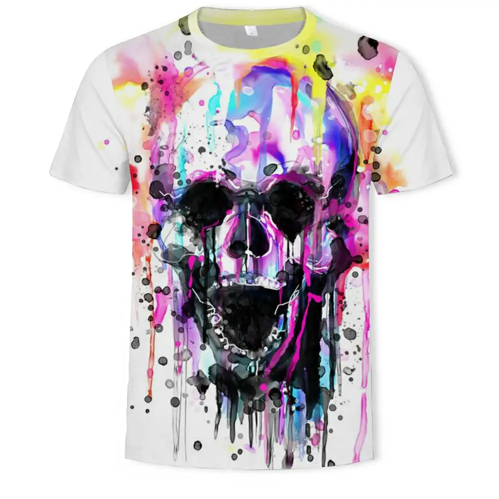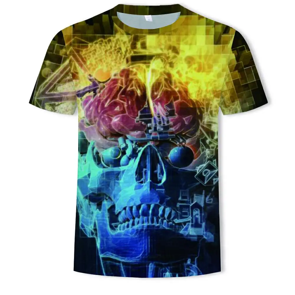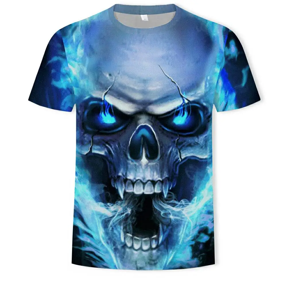 Летняя новая мужская футболка с 3D черепом и покером, модные топы с коротким рукавом, уличная футболка с круглым вырезом, Повседневная футболка унисекс