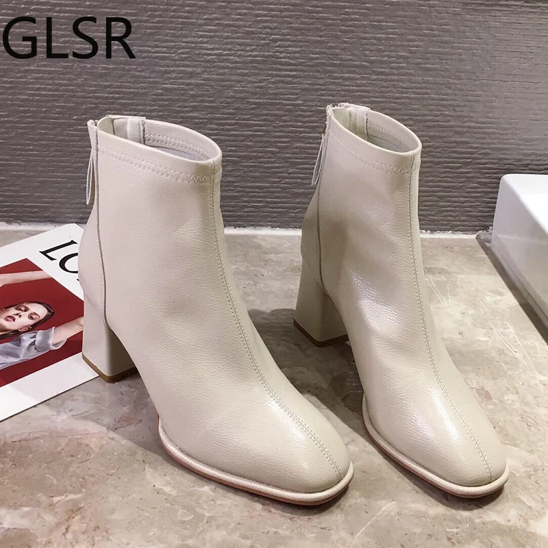 Роскошные Брендовые женские бежевые ботильоны на высоком блочном ка...