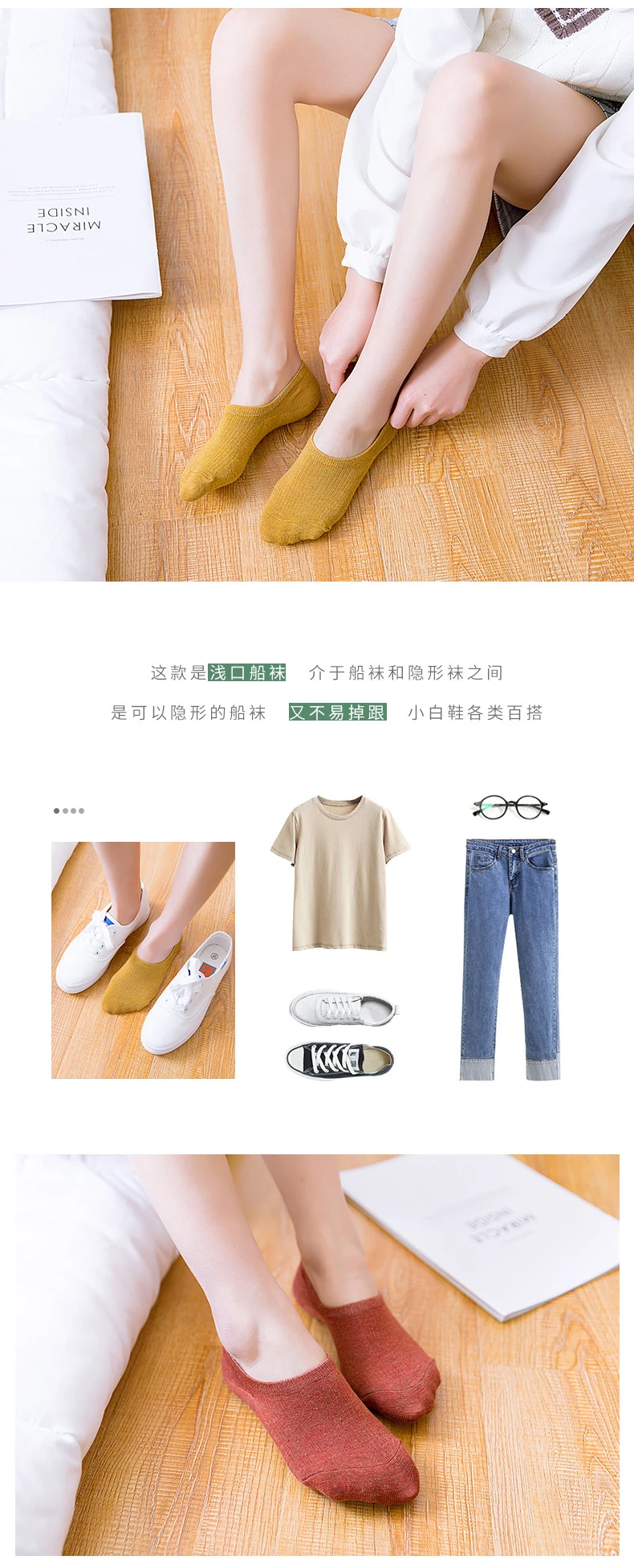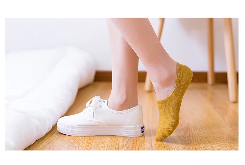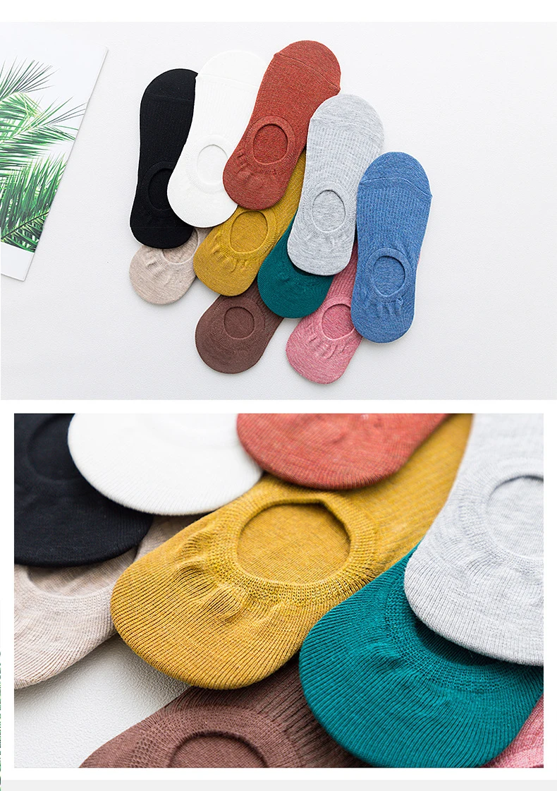 Носки женские хлопковые нескользящие, однотонные мягкие невидимые носки до щиколотки, 5 парыкомпл., из силикона, на весну-лето