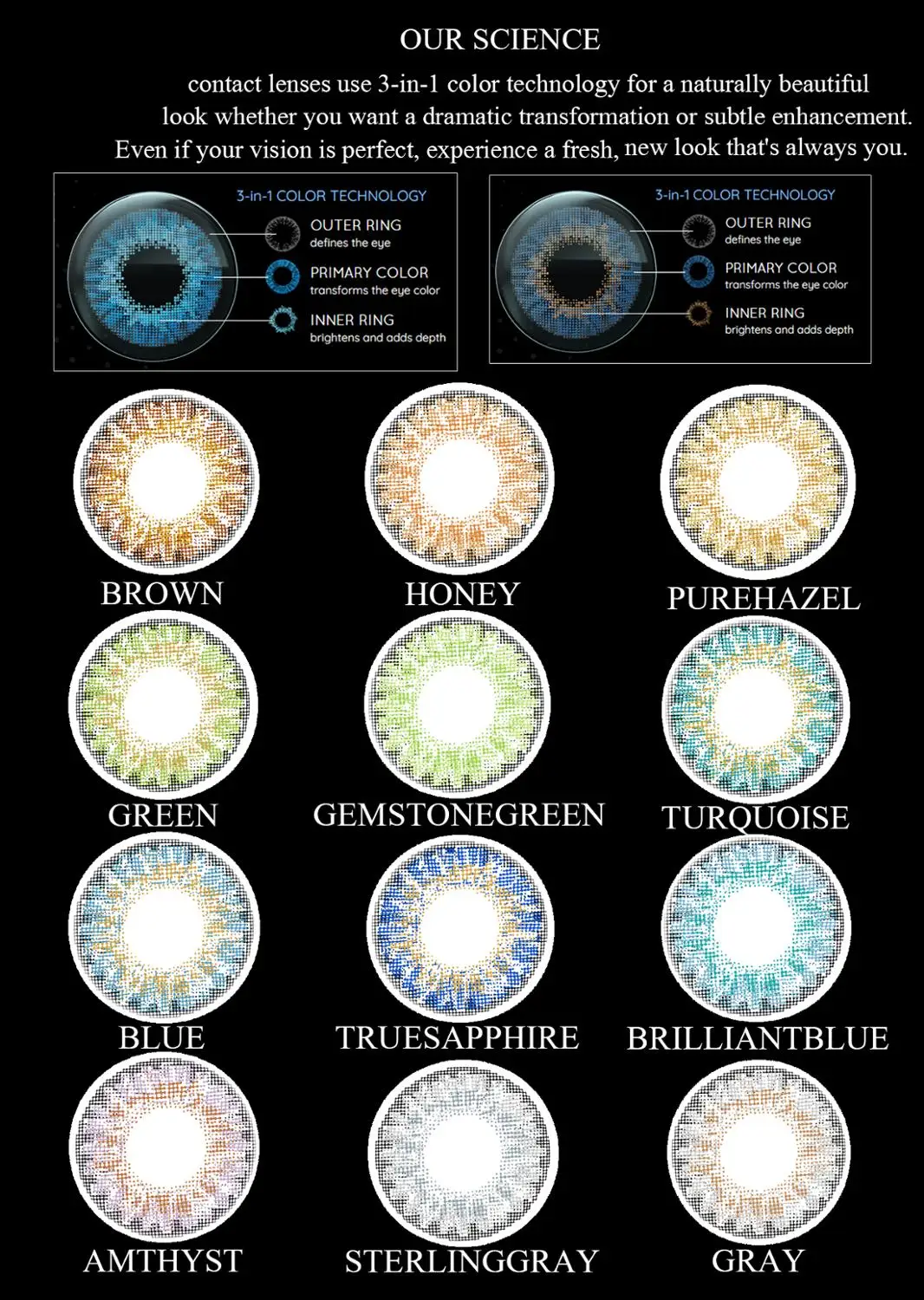 Классические контактные линзы 3 оттенка 12 цветов США горячая Распр...