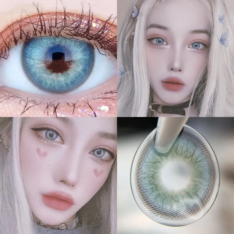Фотоблики (1 пара), трехцветные контактные линзы, глаза, голубые фо...