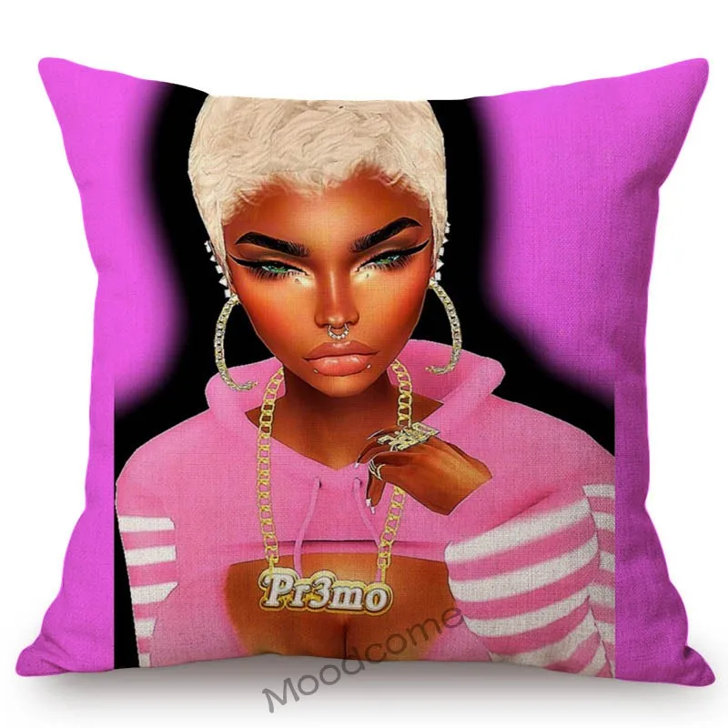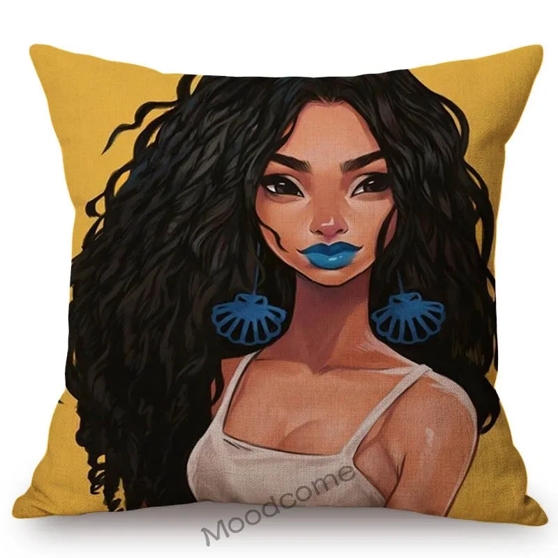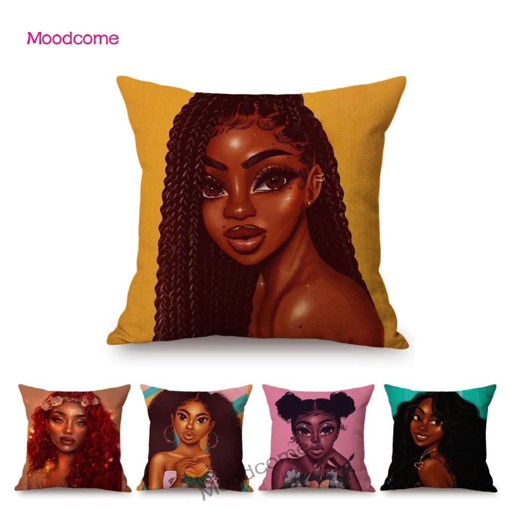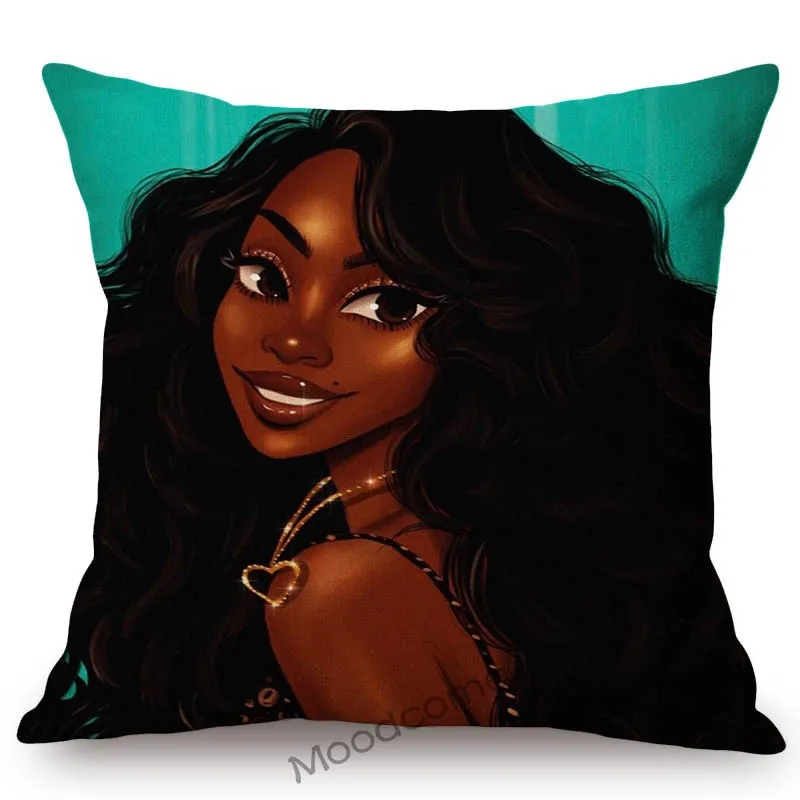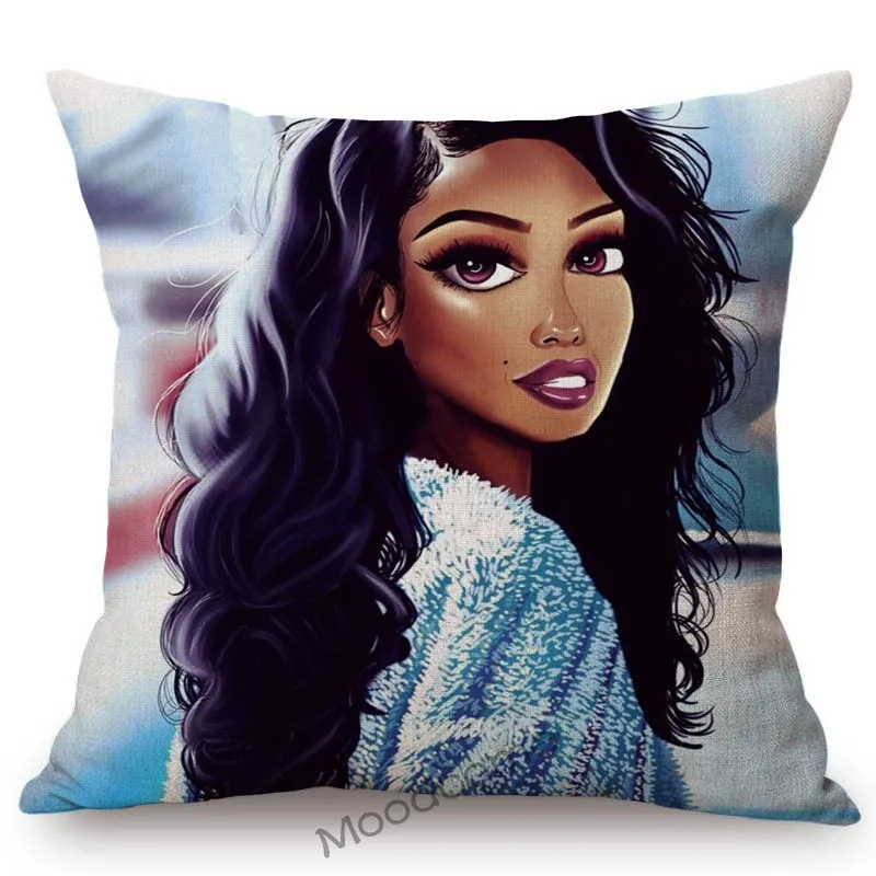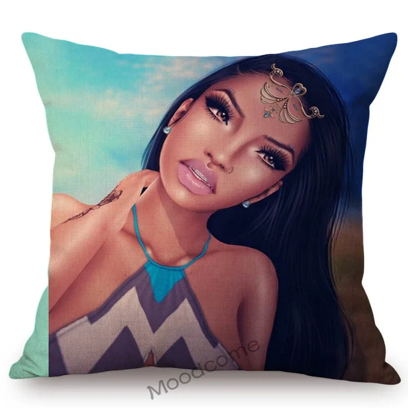 Модная наволочка из хлопка и льна с изображением девушки из мультфи...