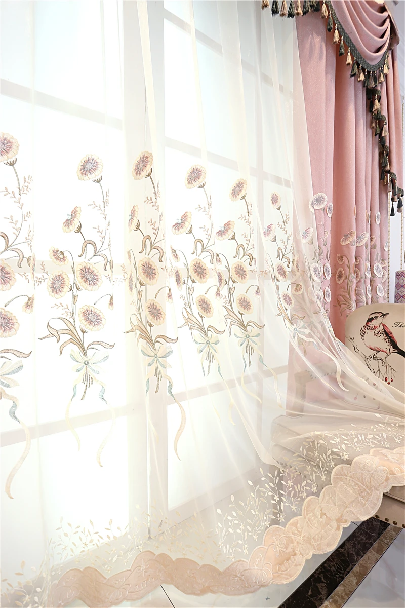Европейские роскошные виллы, шторы с вышивкой для окон гостиной, ше...