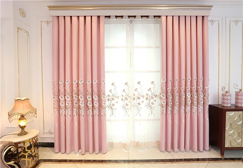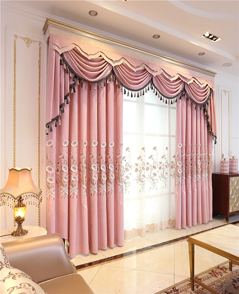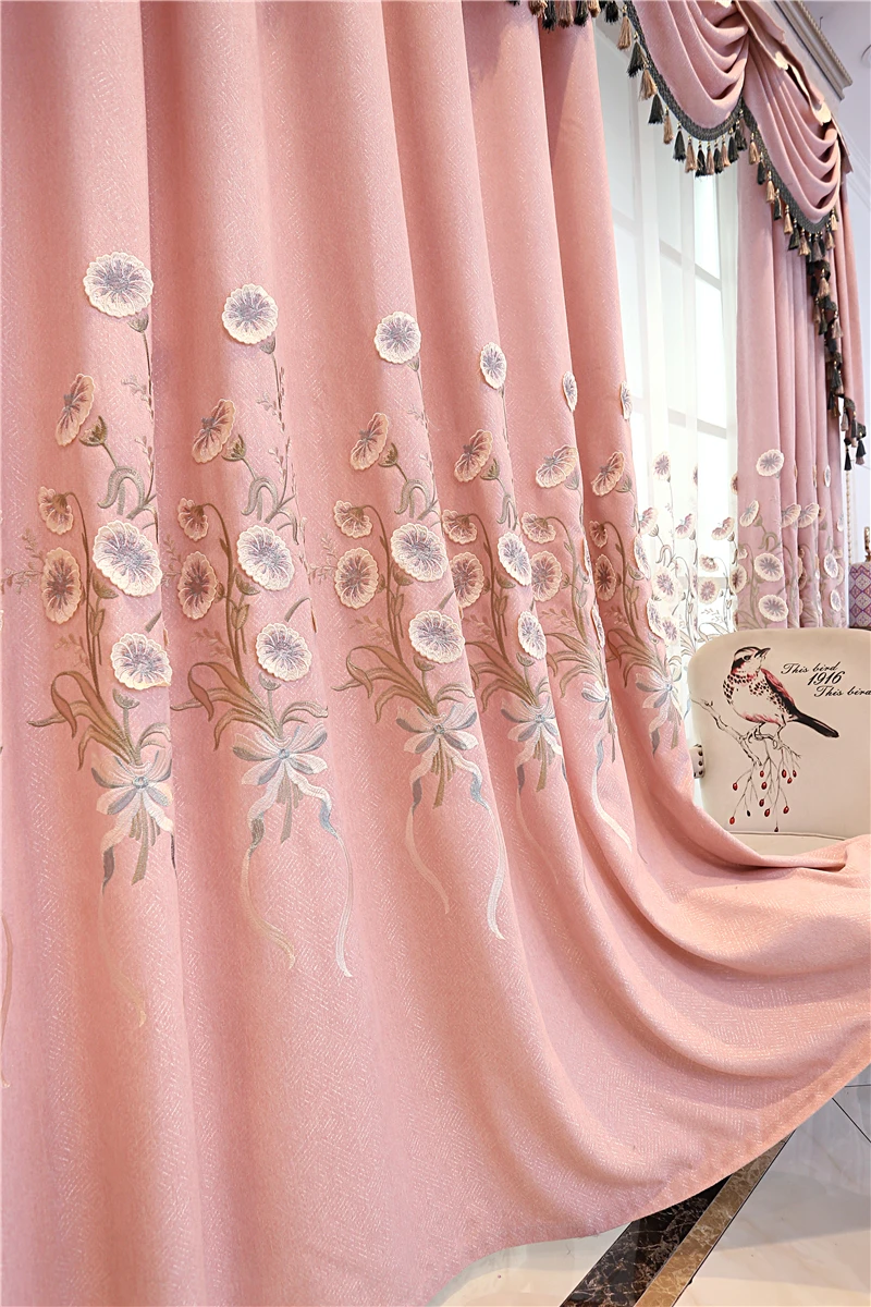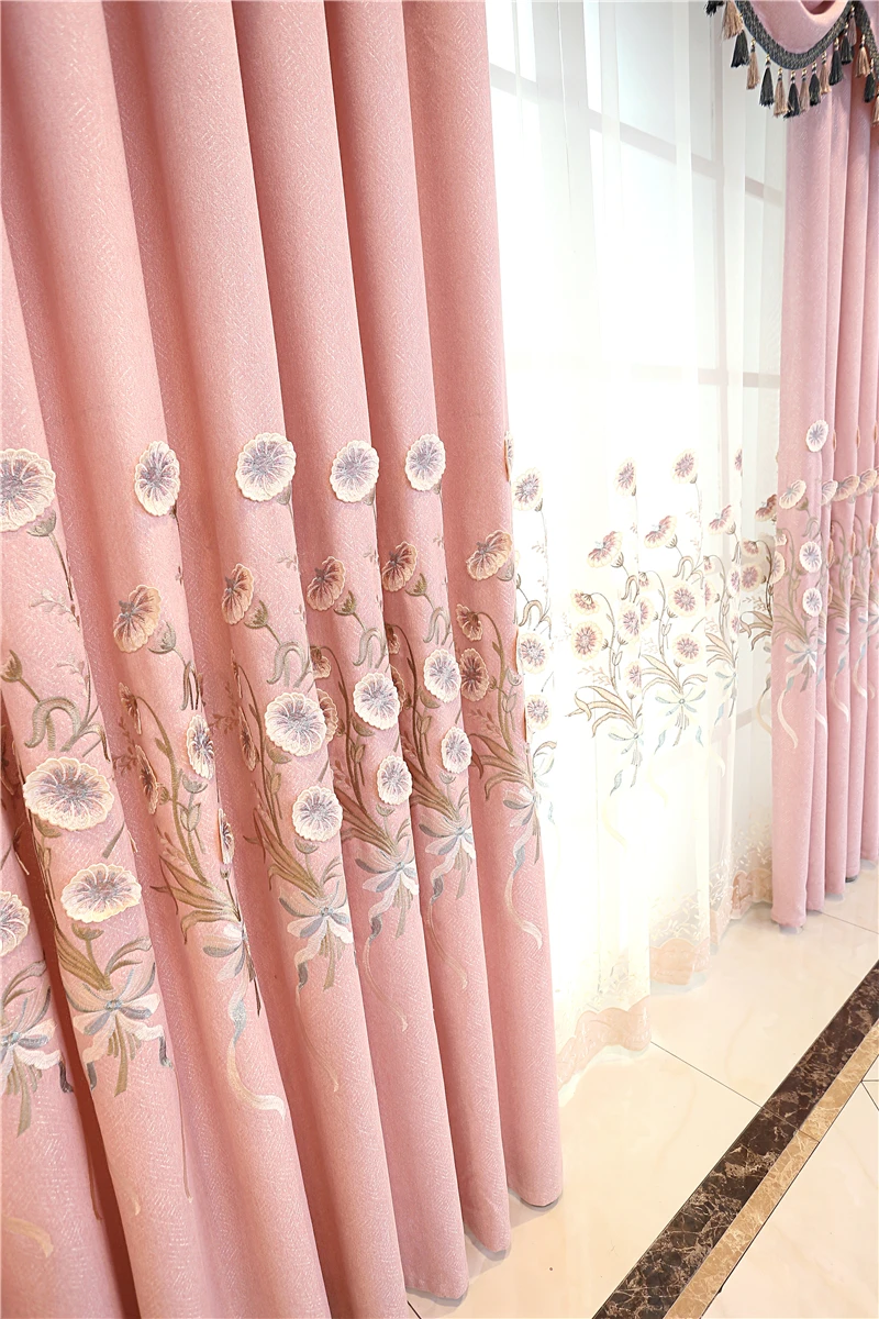 Высококачественные розовые шторы HQYQJJHYR в пасторальном стиле для украшения гостиной, современные роскошные шторы с вышивкой для спальни, отеля