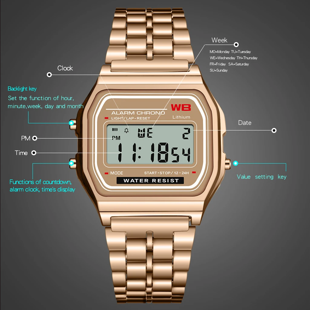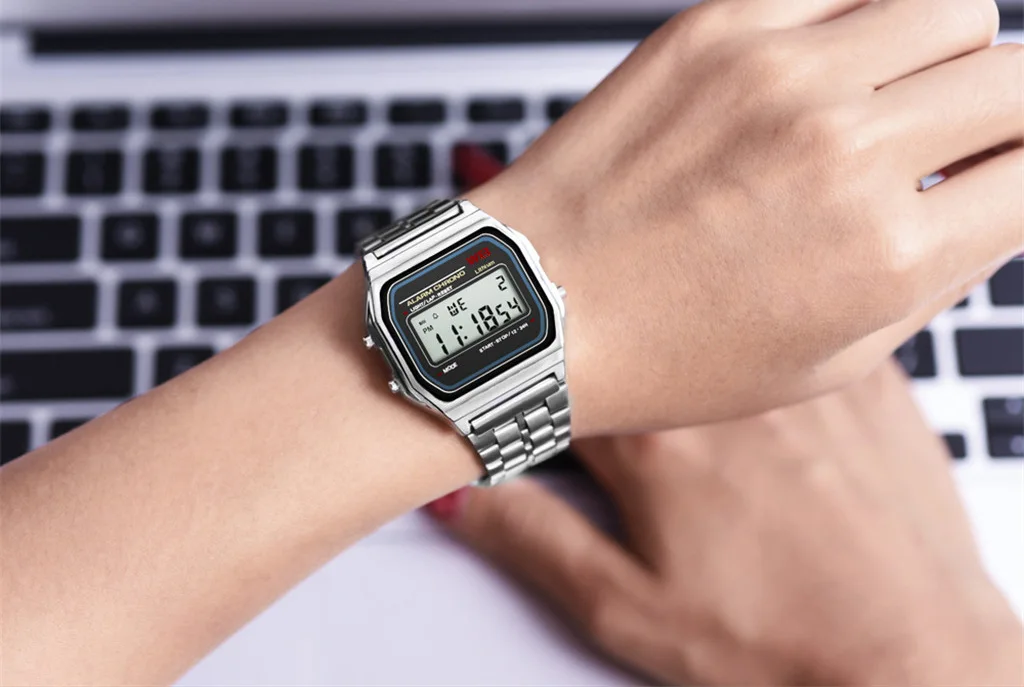 Часы наручные цифровые для мужчин и женщин, из нержавеющей стали