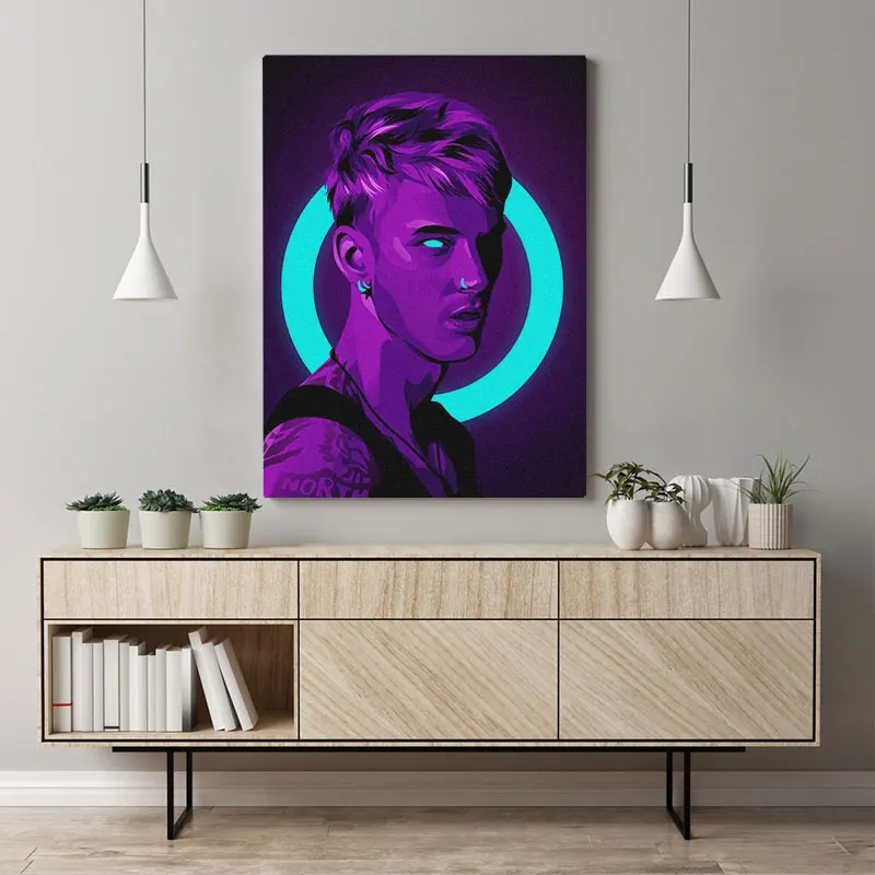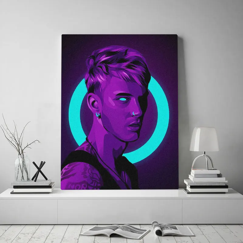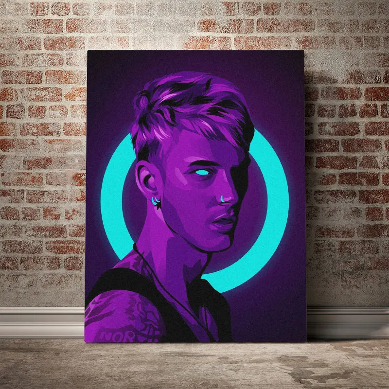 Неоновый постер Machine Gun Kelly, холст, настенные художественные украшения, принты для гостиной, детской комнаты, дома, спальни, декоративная живопись