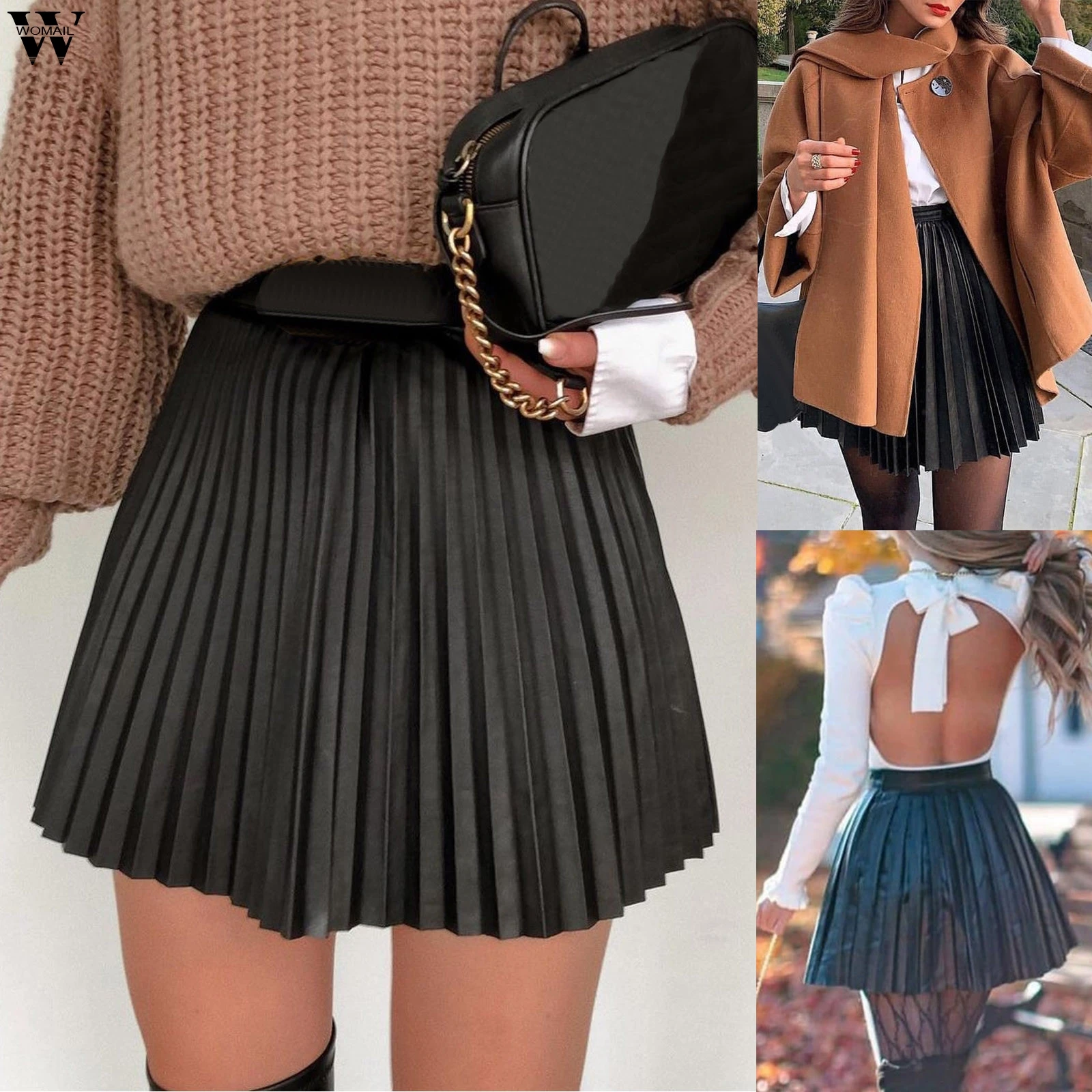 Летняя Женская Сексуальная плиссированная юбка для школьниц, короткая мини-юбка с высокой талией, расклешенная черная Весенняя юбка 2021 Faldas Mujer